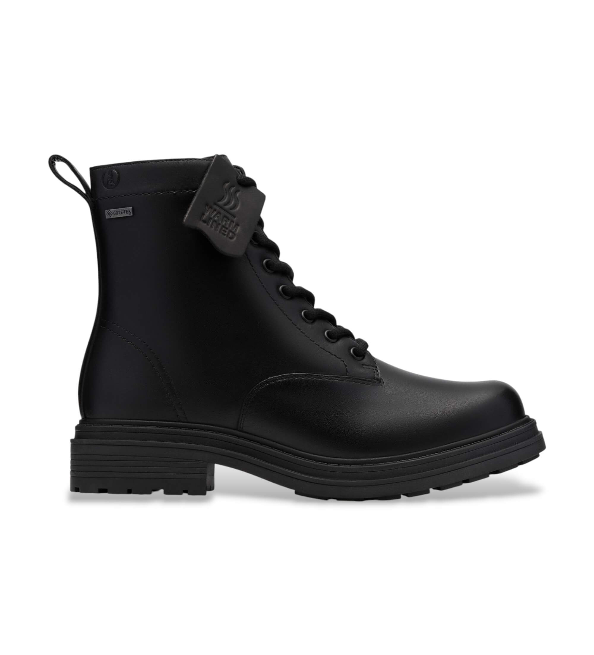 - Tomaia in pregiata pelle nera con membrana GORE-TEX® impermeabile, antivento e traspirante che mantiene i piedi asciutti e comodi