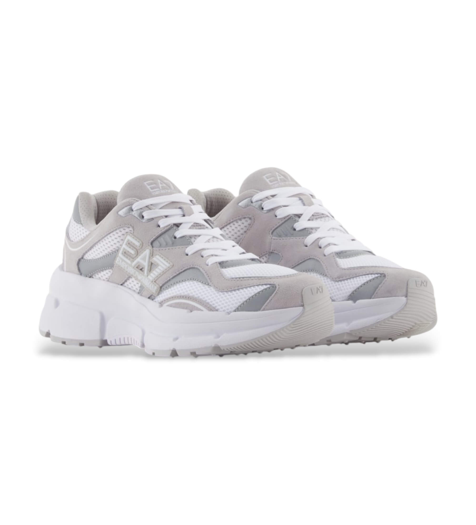 Sneakers lifestyle caratterizzate dall'abbinamento di suede e mesh, personalizzate dal logo EA7 a contrasto sul lato. Un'opzione accattivante grazie al perfetto mix di stile e attitudine sportiva, ideale per il tempo libero.