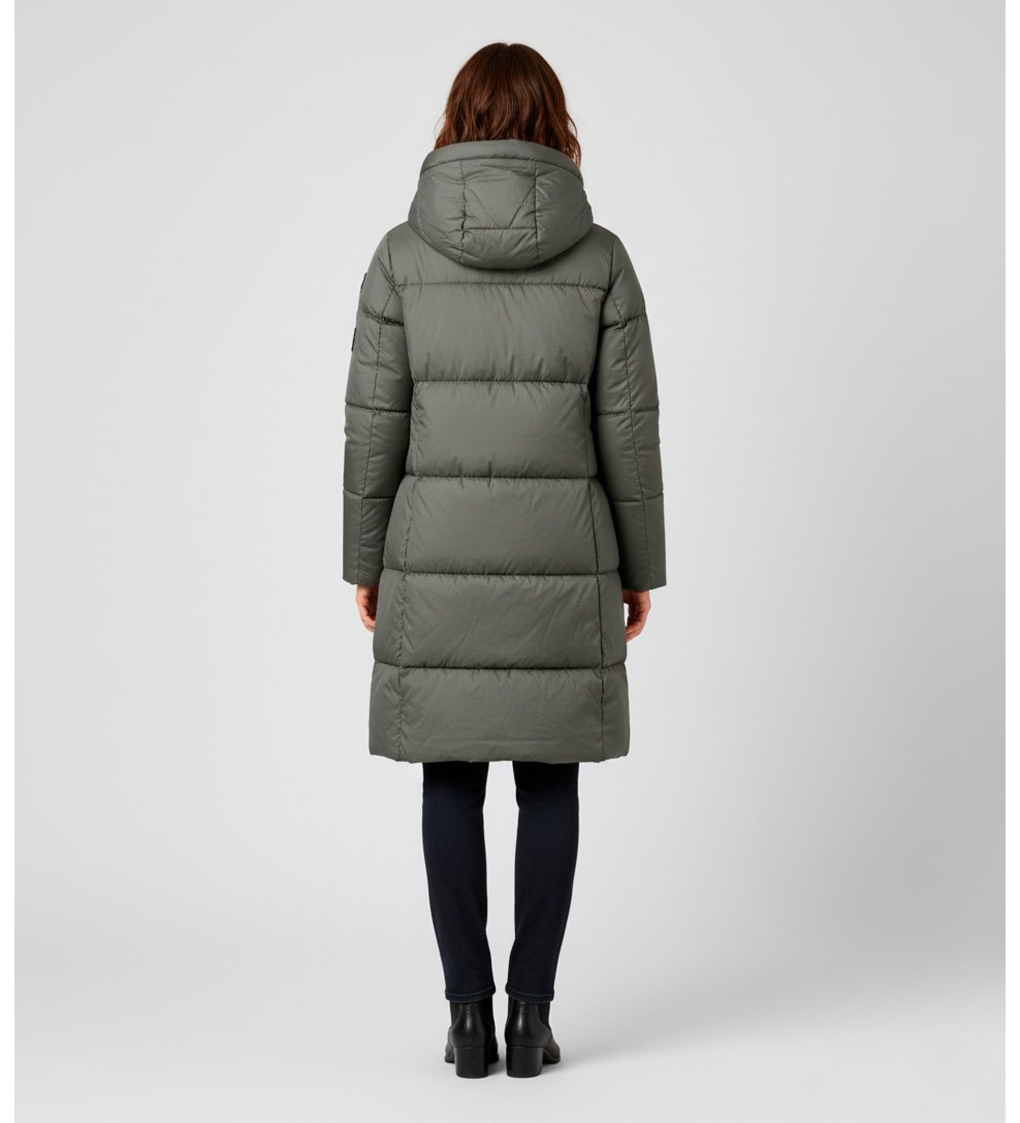 Il cappotto Baru, pensato per una donna moderna e attenta, è realizzato con il 59% di poliestere riciclato e il 41% di Sorona®, un innovativo biopolimero derivato dagli scarti della produzione di mais. Questa combinazione non solo privilegia la sostenibilità, ma offre anche un capo dall'estetica contemporanea e funzionale. Questa giacca reversibile presenta uno stile casual, ideale per affrontare le intemperie con eleganza e responsabilità ambientale.