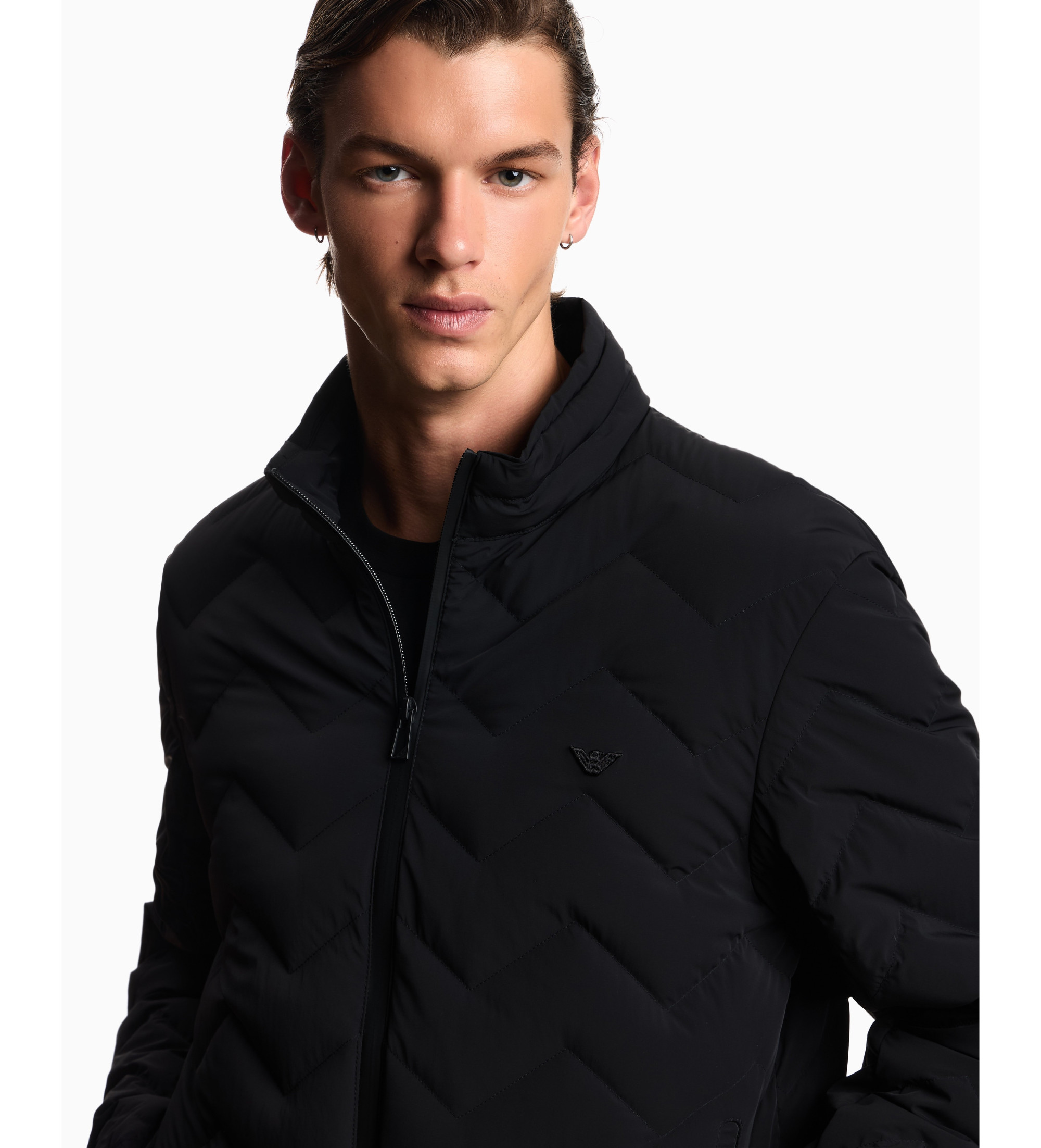 Piumino full-zip realizzato in nylon spandex con trapuntatura a chevron. Il tessuto coniuga un'eccezionale leggerezza a una resistenza e una durevolezza straordinarie. Queste caratteristiche, unite alle proprietà idrorepellenti, lo rendono adatto a innumerevoli situazioni, garantendo comfort e prestazioni in diverse condizioni atmosferiche. La sensazione avvolgente dell'imbottitura in vera piuma è esaltata dalla finitura trapuntata. Questo capo fa parte della collezione Essentials, l'intramontabile dichiarazione di stile di Emporio Armani: una collezione che mantiene la sua estetica consolidata, con silhouette raffinate e pensate per un guardaroba adatto a quasi tutte le stagioni. Sono i versatili "basic" che ogni uomo dovrebbe avere nel suo guardaroba.