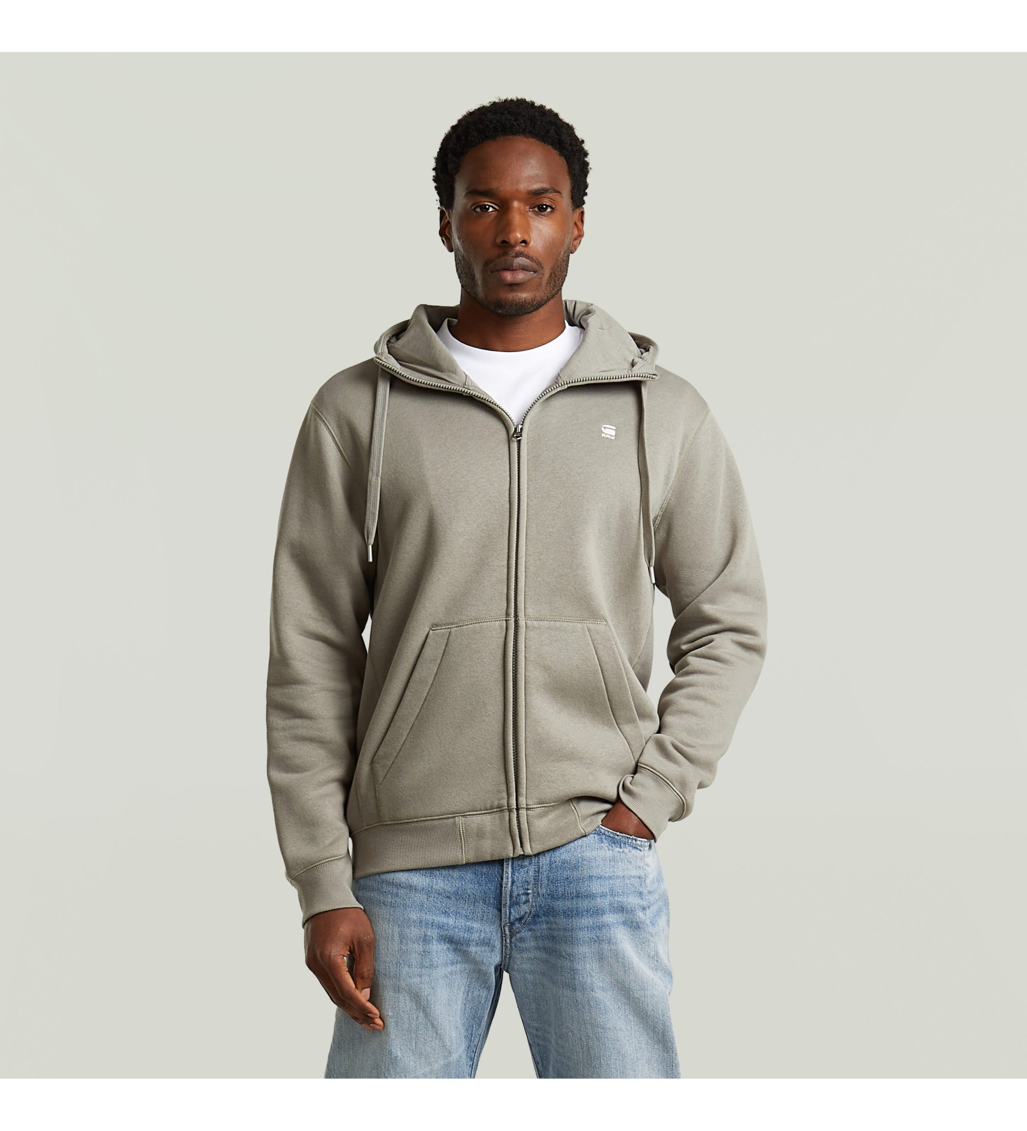 La felpa con cappuccio e zip Premium Core è dotata di cappuccio rialzato con coulisse regolabile. Le maniche lunghe presentano una finitura arrotondata che rivela un polsino a coste sottostante.