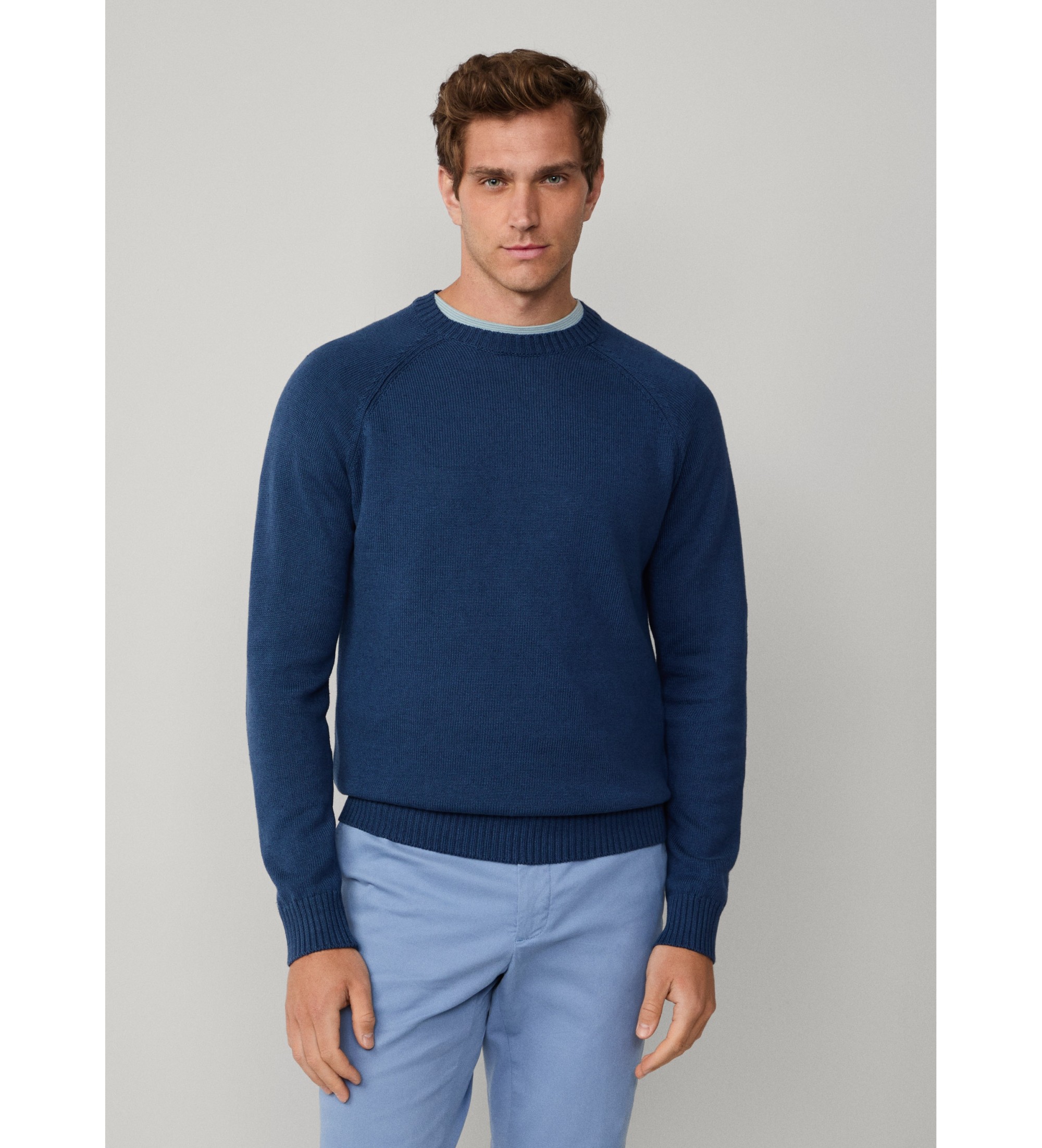 Hackett London MAGLIONE GIROCOLLO IN COTONE E LINO BLU SCURO