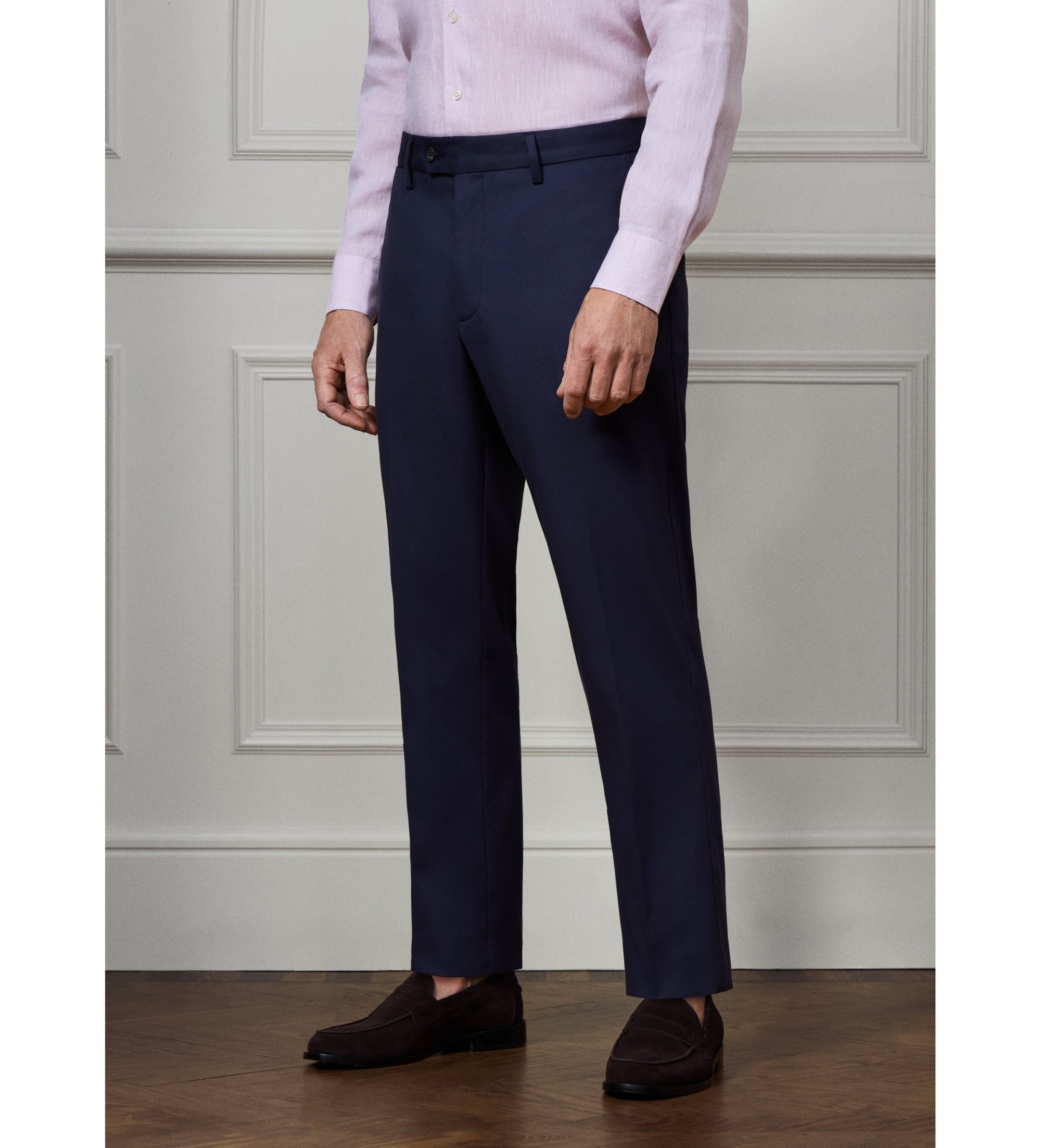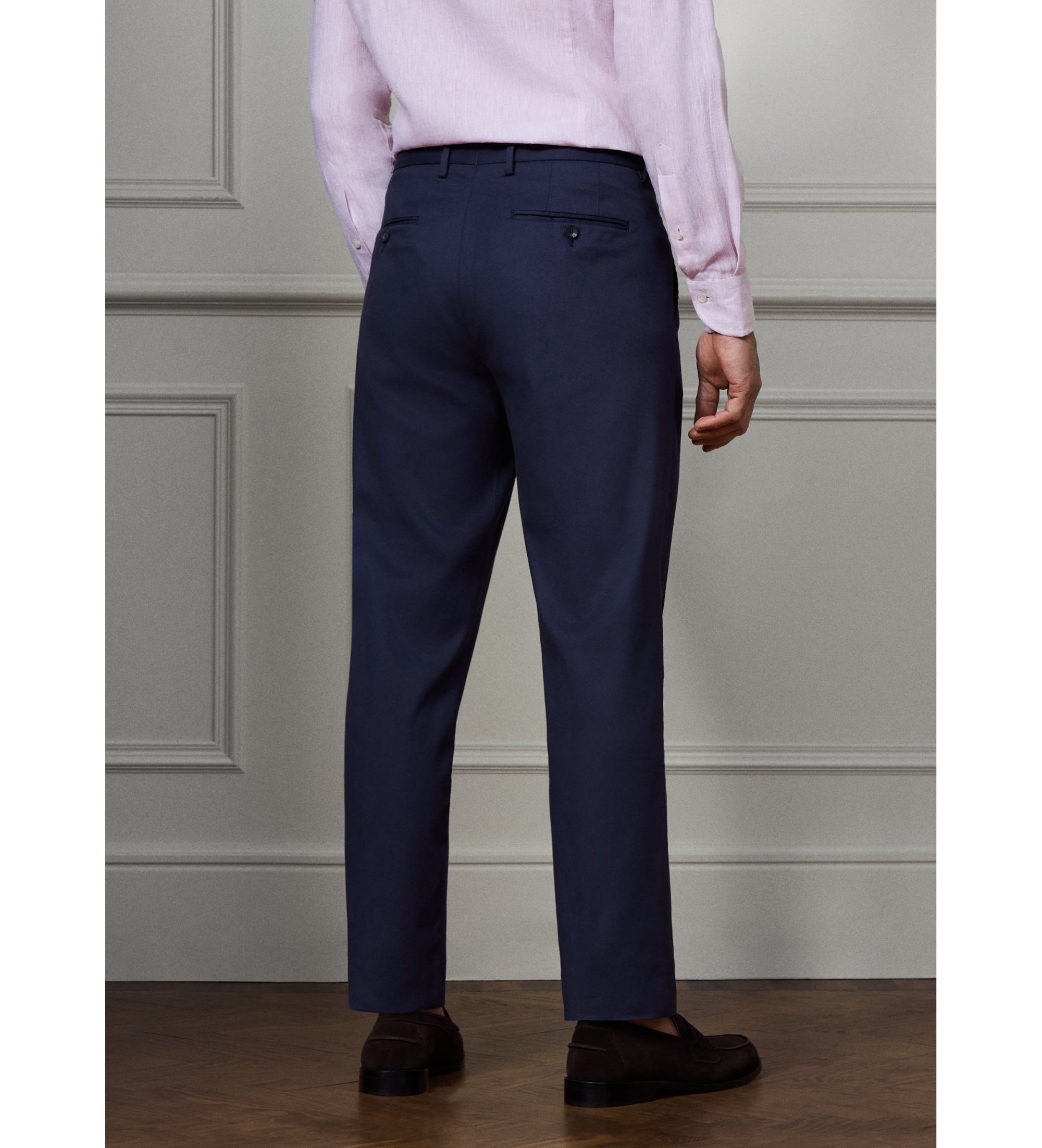 Pantaloni eleganti in tessuto microstrutturato dal classico taglio dritto. Un capo sartoriale raffinato e senza tempo che unisce l'eleganza dei pantaloni eleganti al comfort di un tessuto leggero e versatile, perfetto per look smart casual e formali.