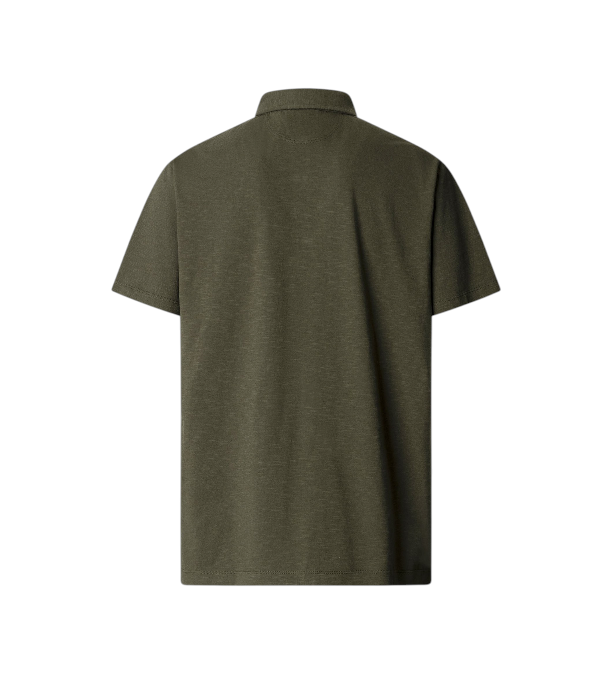 Polo da uomo verde militare, realizzata in un misto piqué di cotone e lino, con una predominanza di cotone per maggiore consistenza e comfort. Presenta un colletto classico, maniche corte e abbottonatura completa; un sottile profilo a contrasto rifinisce la base dell'abbottonatura. Con le sue linee contemporanee e naturali, è un capo versatile, perfetto sia per look casual che eleganti.
