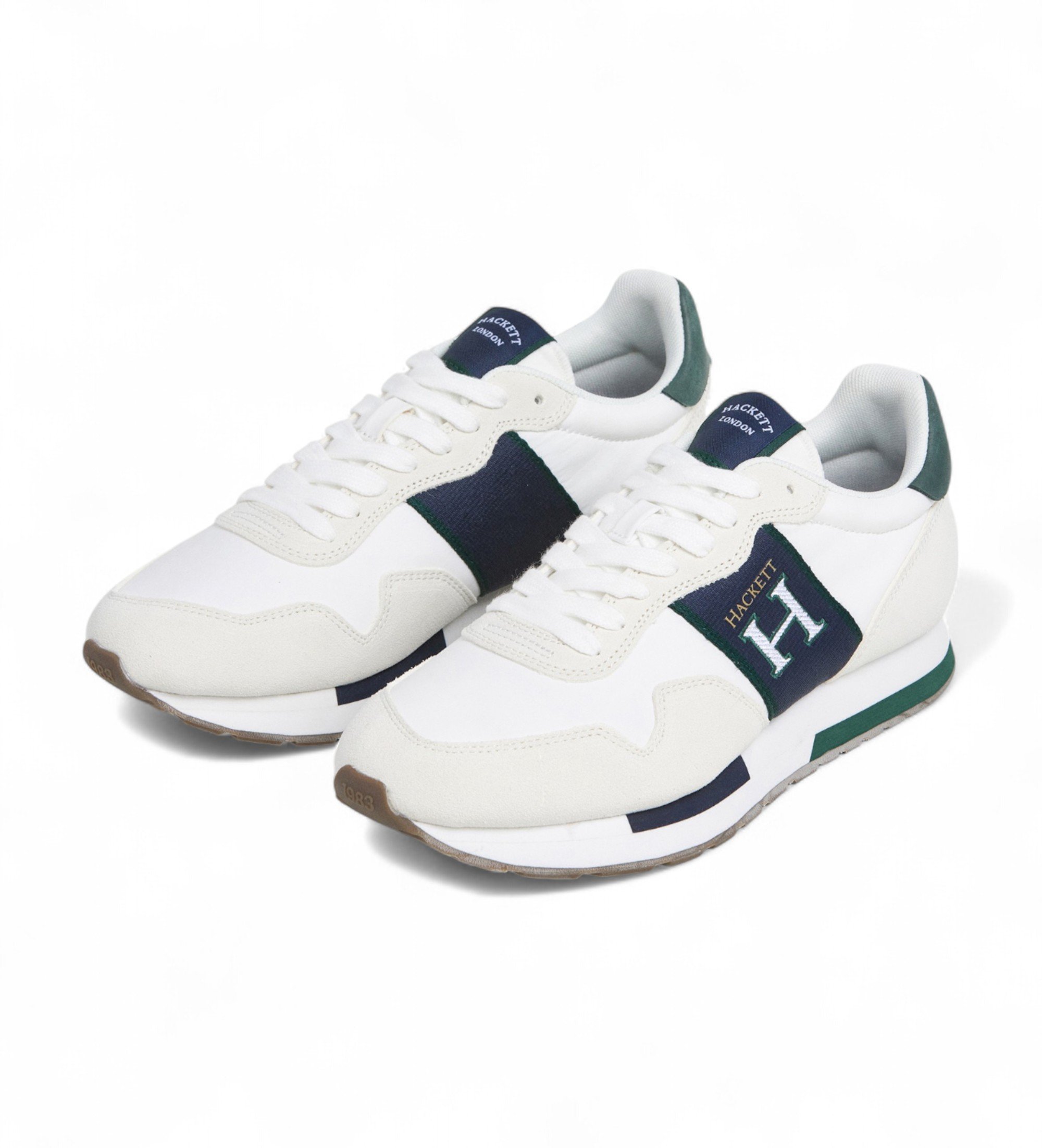 Scarpe da running di ispirazione retrò, realizzate in una varietà di combinazioni di colori e materiali, con monogramma "H" stampato e logo Hackett sul lato, soletta rimovibile, comoda intersuola in EVA e suola in gomma. Collezione Hackett Heritage.