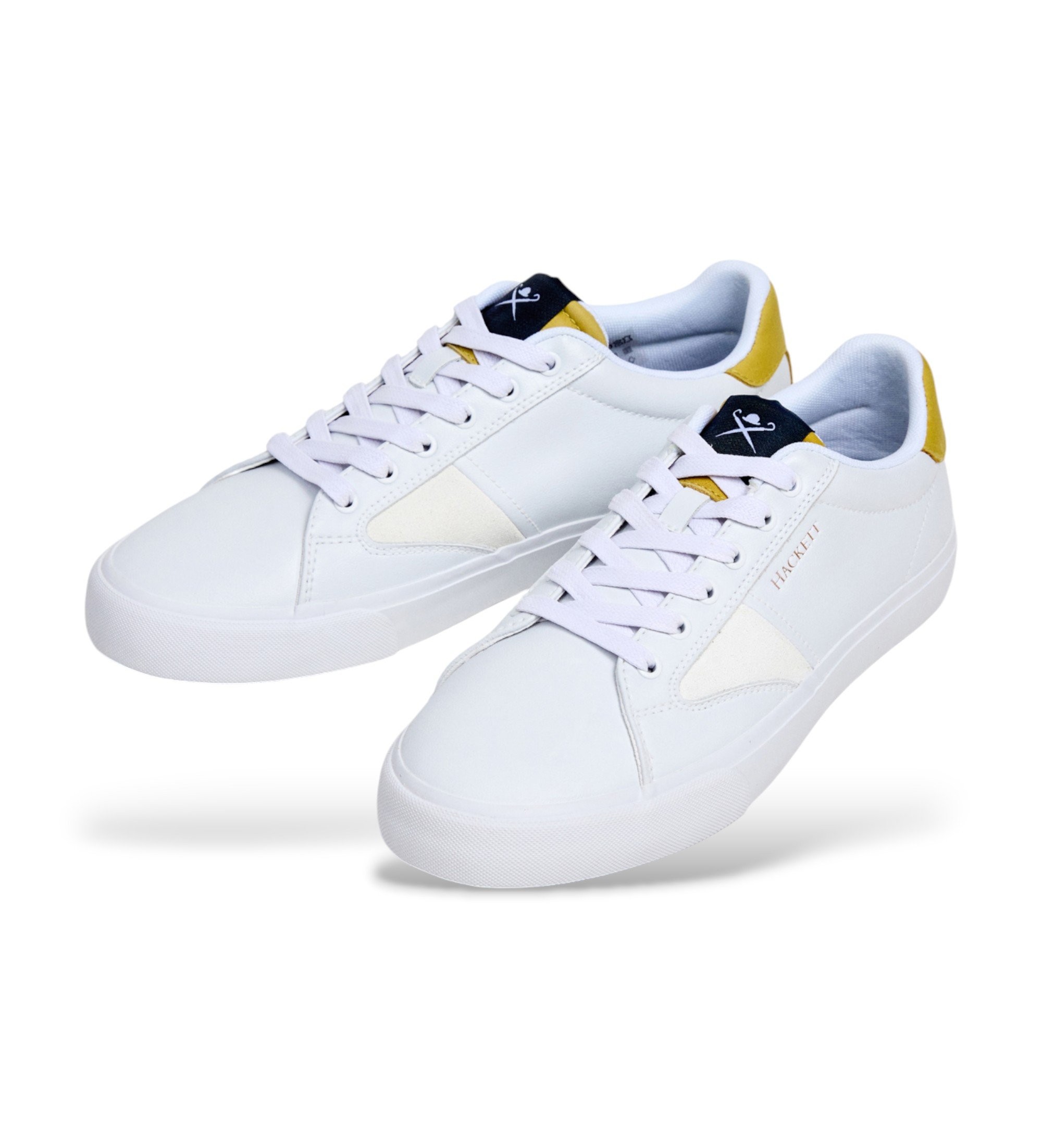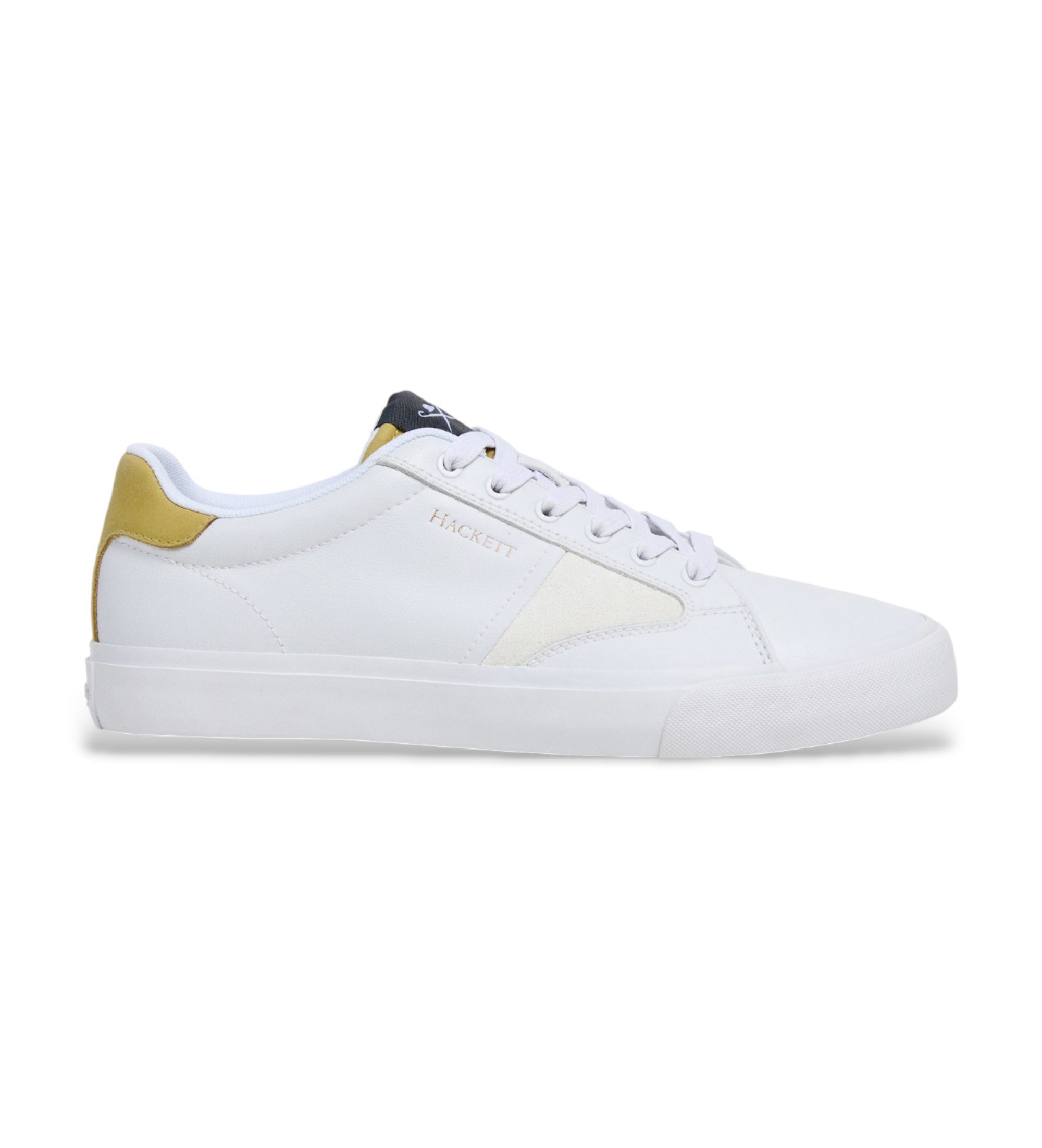 Scopri le sneakers Blake Venture, pensate per l'uomo moderno che apprezza sia lo stile che la sostenibilità. Queste sneakers vulcanizzate sono realizzate in pelle riciclata, offrendo un'alternativa di moda più consapevole senza rinunciare alla raffinatezza. Il design è completato da una linguetta in nabuk a contrasto sul tallone e da un inserto per un tocco distintivo. Il logo Hackett sul lato rafforza la loro identità unica.
