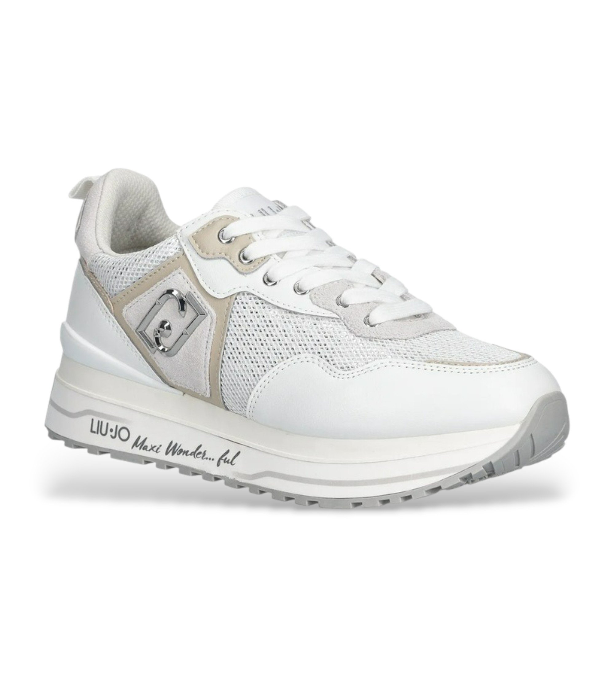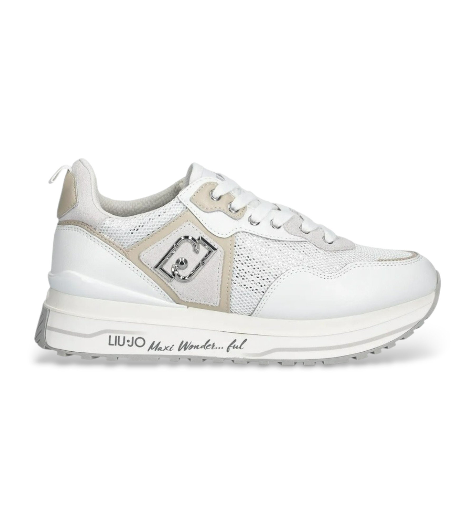 Abbraccia uno stile urbano sofisticato con queste sneakers Liu Jo che uniscono un design contemporaneo al massimo comfort. La loro estetica pulita e bianca è impreziosita da pannelli laterali in mesh traspirante e da delicati dettagli beige e metallizzati che aggiungono un tocco elegante e moderno.