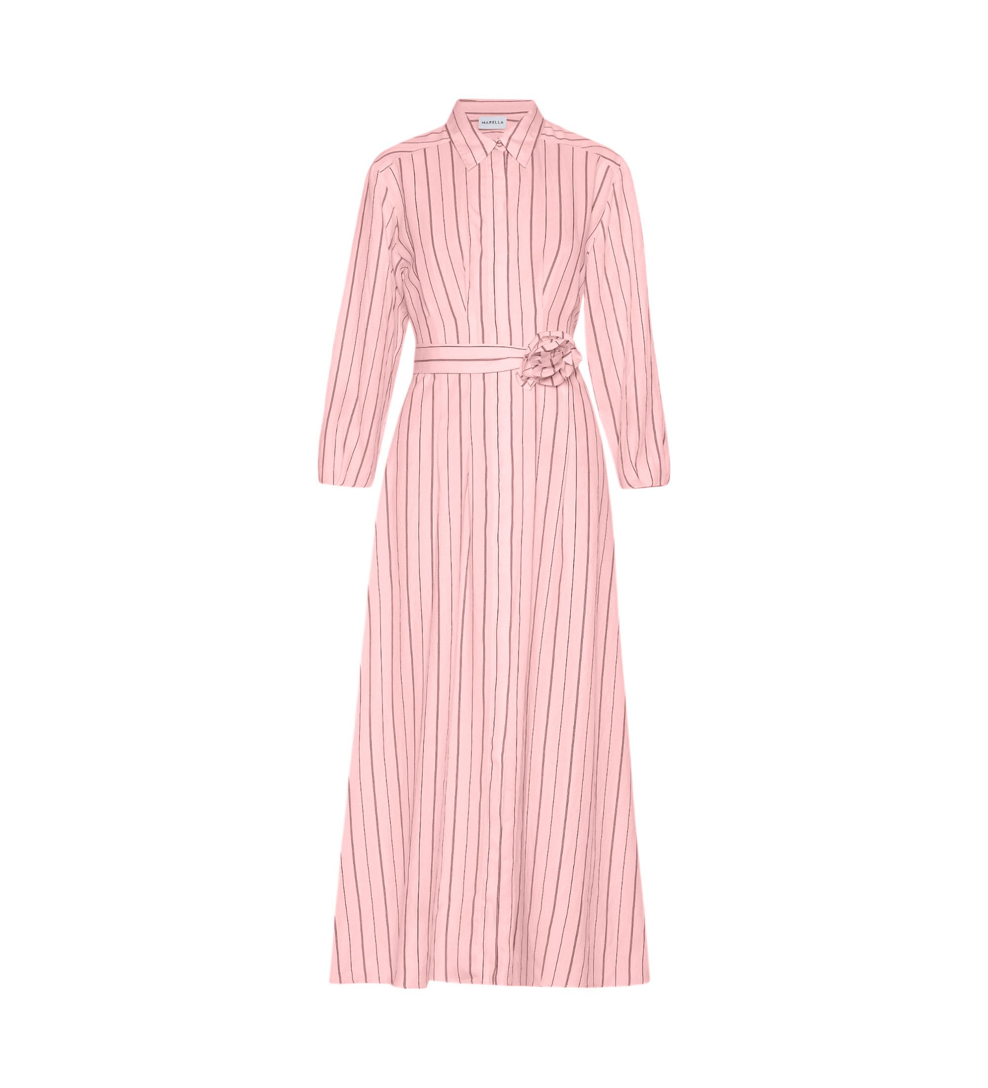 Glamour urbano. Nuovo abito chemisier in viscosa scintillante che valorizza la figura. La cintura floreale pu essere indossata in vita o intorno al collo come accessorio romantico.