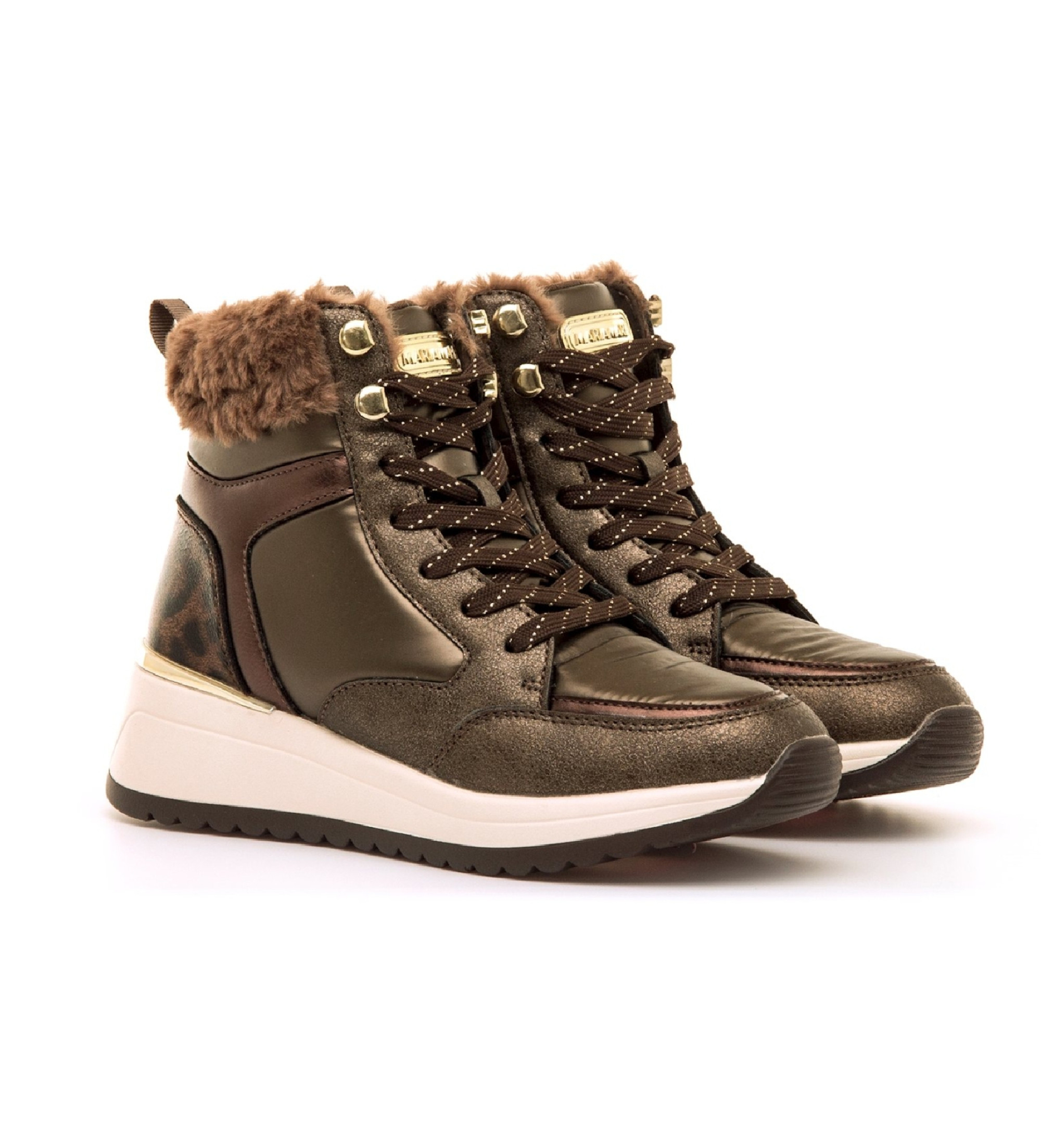 Gli stivaletti da donna Salerno offrono un design sofisticato e versatile con un tocco urbano. Realizzati in un colore bordeaux, presentano un intrigante mix di texture e contrasti grazie ai pannelli metallici e alla stampa leopardata sul retro. Il collo è rifinito in pelliccia sintetica per un tocco caldo e accattivante nelle giornate fredde. Presentano una chiusura con lacci e una cerniera laterale, che facilita una calzata precisa e confortevole. La suola a zeppa offre un comodo rialzo per un look essenziale.