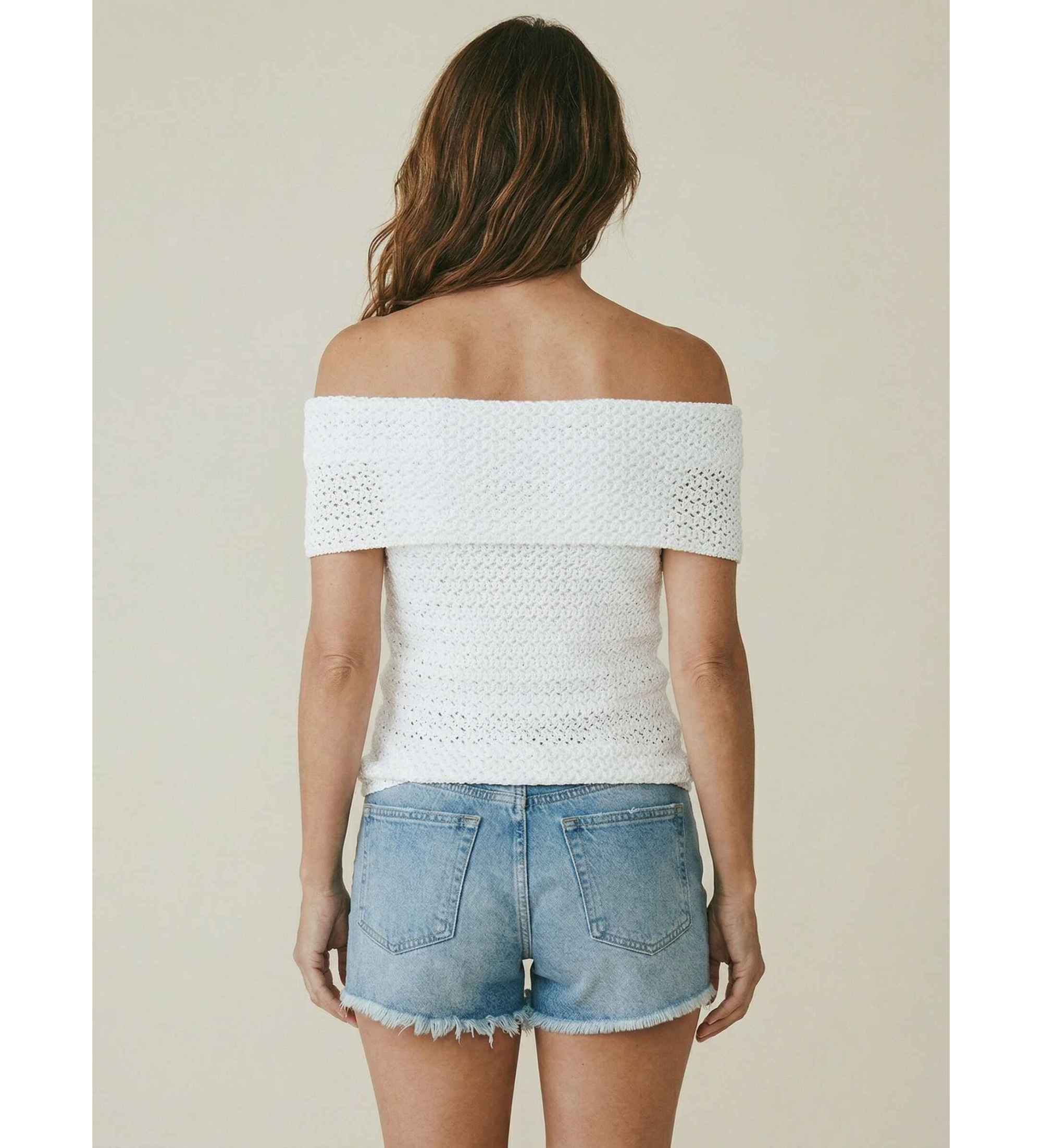 Top in maglia di pizzo con scollo a spalle scoperte: questo capo sensuale e femminile unisce l'eleganza senza tempo di un tessuto strutturato a una silhouette aderente che valorizza la figura. La piega sullo scollo aggiunge volume e struttura, rendendo questo top Michael Kors la scelta perfetta per le serate estive o gli eventi all'aperto.