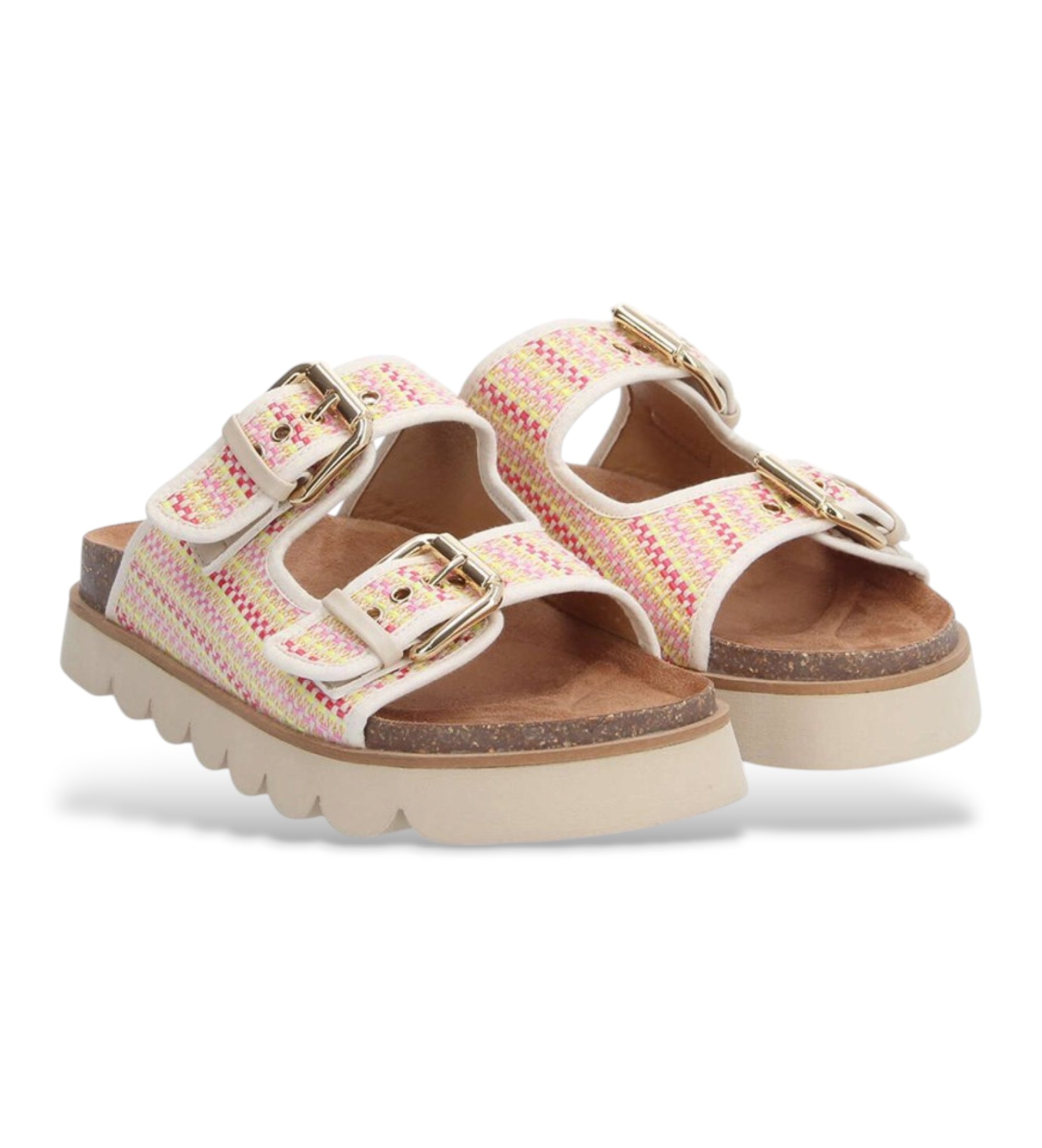 Il sandalo Sandy Slap il sandalo estivo pensato per la donna che cerca comfort senza rinunciare allo stile. Caratterizzato da due cinturini in tessuto multicolore con fibbie, poggia su un plantare anatomico in sughero che offre comfort immediato e su una suola ultraleggera dal design esclusivo che facilita la camminata. Facile da indossare e dal look fresco, aggiunge un tocco estivo e audace a qualsiasi outfit. Colore predominante: multicolore. Materiale principale: tessuto.