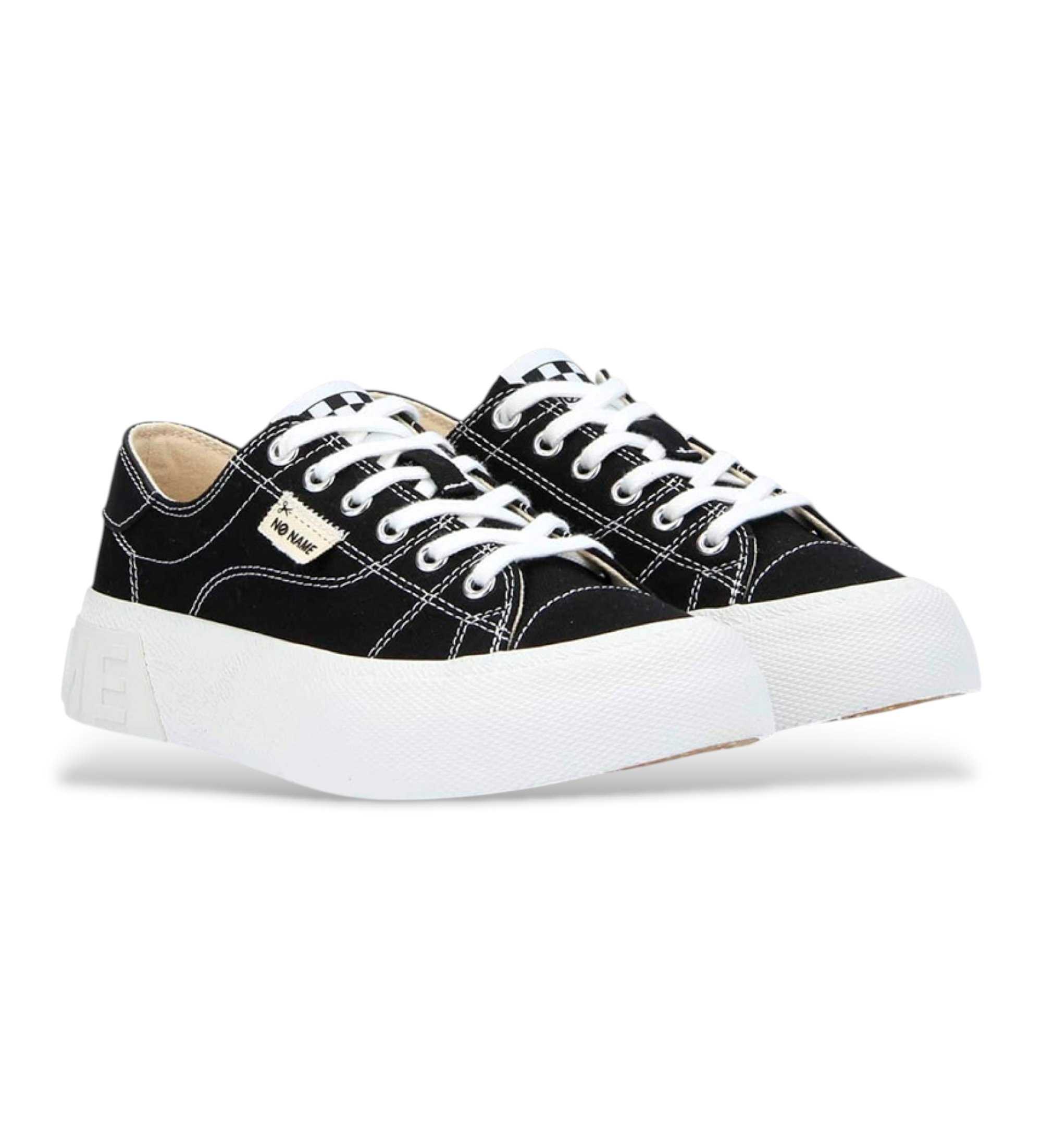 Sneakers da donna in tela che reinterpretano un classico urbano con un tocco contemporaneo. La tomaia in cotone riciclato, in un elegante nero, impreziosita da cuciture ispirate al denim e da una chiusura con lacci che assicura una calzata classica. L'iconica suola spessa a contrasto dona carattere e comfort quotidiano, mentre i dettagli in tela mantengono una sensazione di leggerezza e naturalezza. Un'opzione casual e sostenibile per camminare con stile.