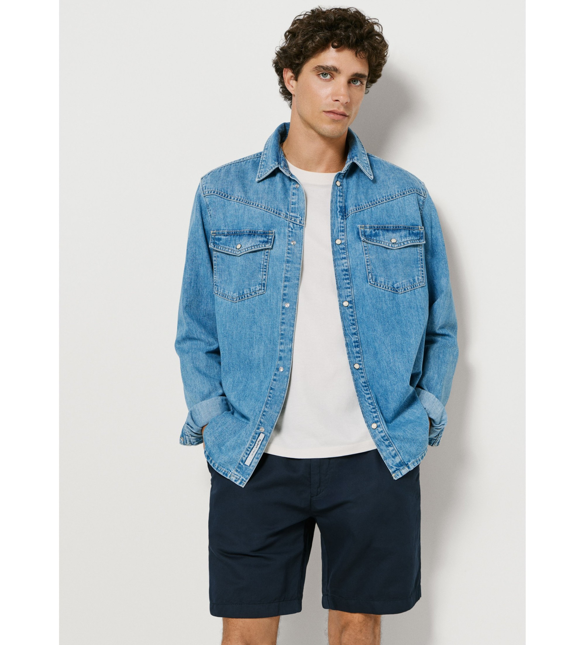 Pantaloncini dalla vestibilit comoda, realizzati in misto cotone e lino, con un modello pensato per l'uomo che cerca il comfort senza rinunciare allo stile. La tintura in capo conferisce un aspetto leggermente invecchiato e un colore blu uniforme che acquista maggiore intensit con l'uso. Versatili e leggeri, sono un capo essenziale per i look casual di tutti i giorni.