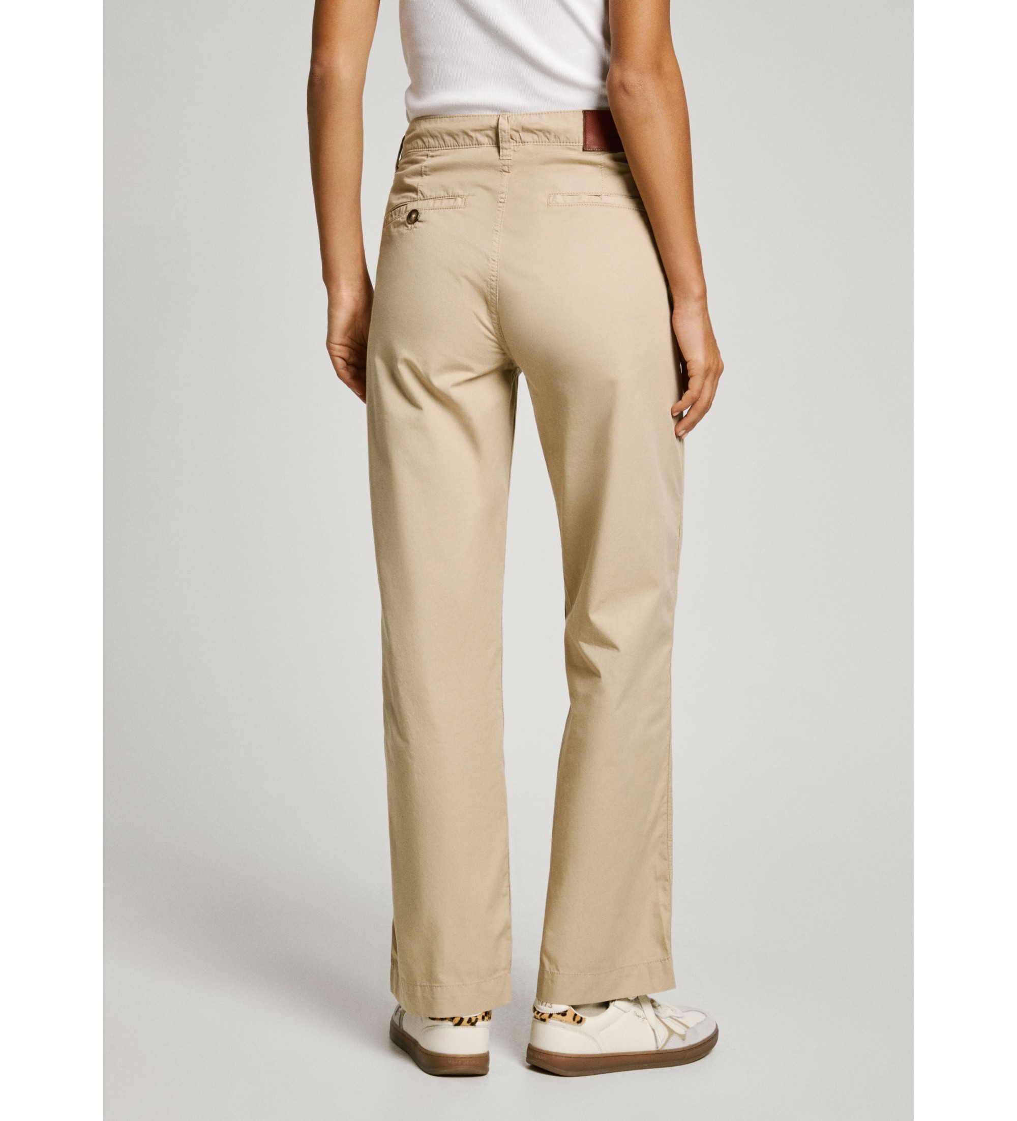 Il cotone sostenibile riduce al minimo l'uso di sostanze chimiche nocive, migliora la qualità del terreno e previene l'inquinamento, contribuendo a proteggere la salute degli agricoltori e della fauna selvatica locale. - Pantaloni chino in tessuto popeline - Vestibilità regolare - Vita media - Gamba larga - Tasche italiane - Chiusura con cerniera e bottone - Tasche posteriori a filetto con piping - Passanti per cintura - Etichetta con logo PEPEJEANS in vita - Realizzati in 100% cotone sostenibile