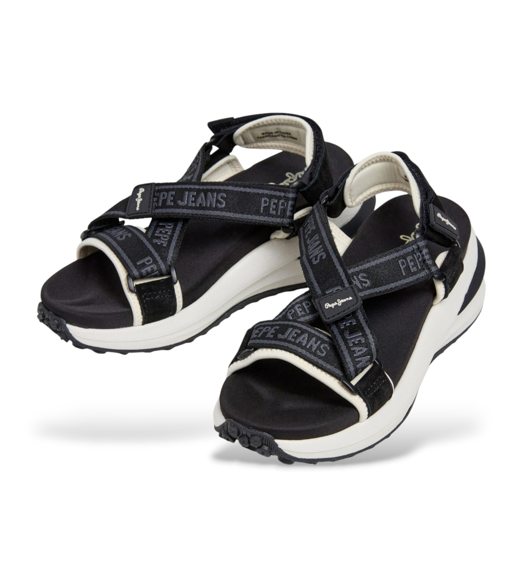 Sandalo alla moda Winslove Soft W realizzato con una combinazione di materiali con cinturini in tessuto con logo in rilievo, suola in phylon con zeppa voluminosa, stabilizzatore personalizzato, chiusura con cinturino adesivo e classici loghi stampati in 3D.