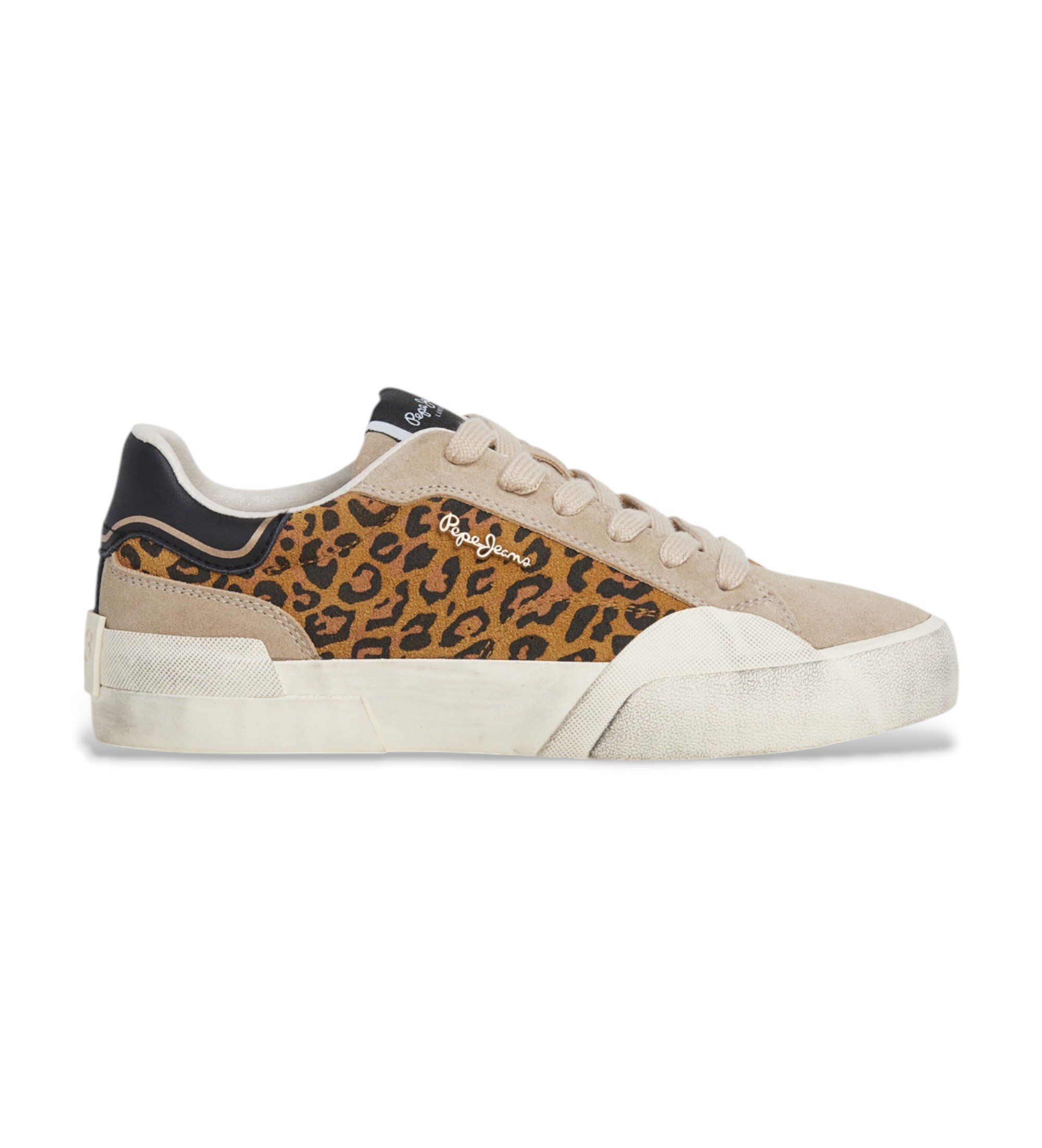 Sneaker bassa con combinazione di inserti in pelle e stampa animalier, perfetta per un look audace.