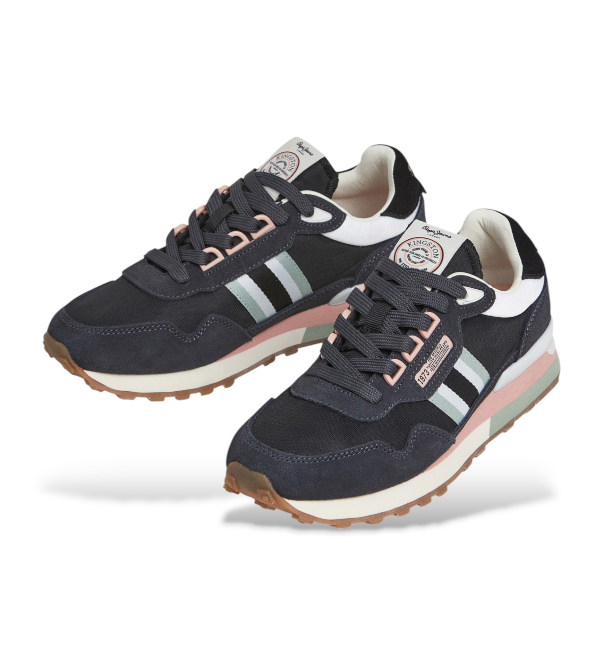Queste sofisticate sneakers da donna combinano tessuti di alta qualità che aggiungono un tocco moderno a qualsiasi outfit. Spiccano i dettagli in suede su punta, lacci e tallone, completati da una chiusura con lacci e anelli a D per una calzata sicura e confortevole. Le strisce diagonali tricolore sui lati aggiungono un tocco dinamico ed elegante, mentre il logo PEPEJEANS in rilievo inciso sul tallone aggiunge personalità. Il comfort è garantito da uno stabilizzatore del tallone e da un'intersuola in EVA bicolore ultraleggera che offre un passo morbido. La resistente suola in gomma garantisce un'eccellente trazione a ogni passo.