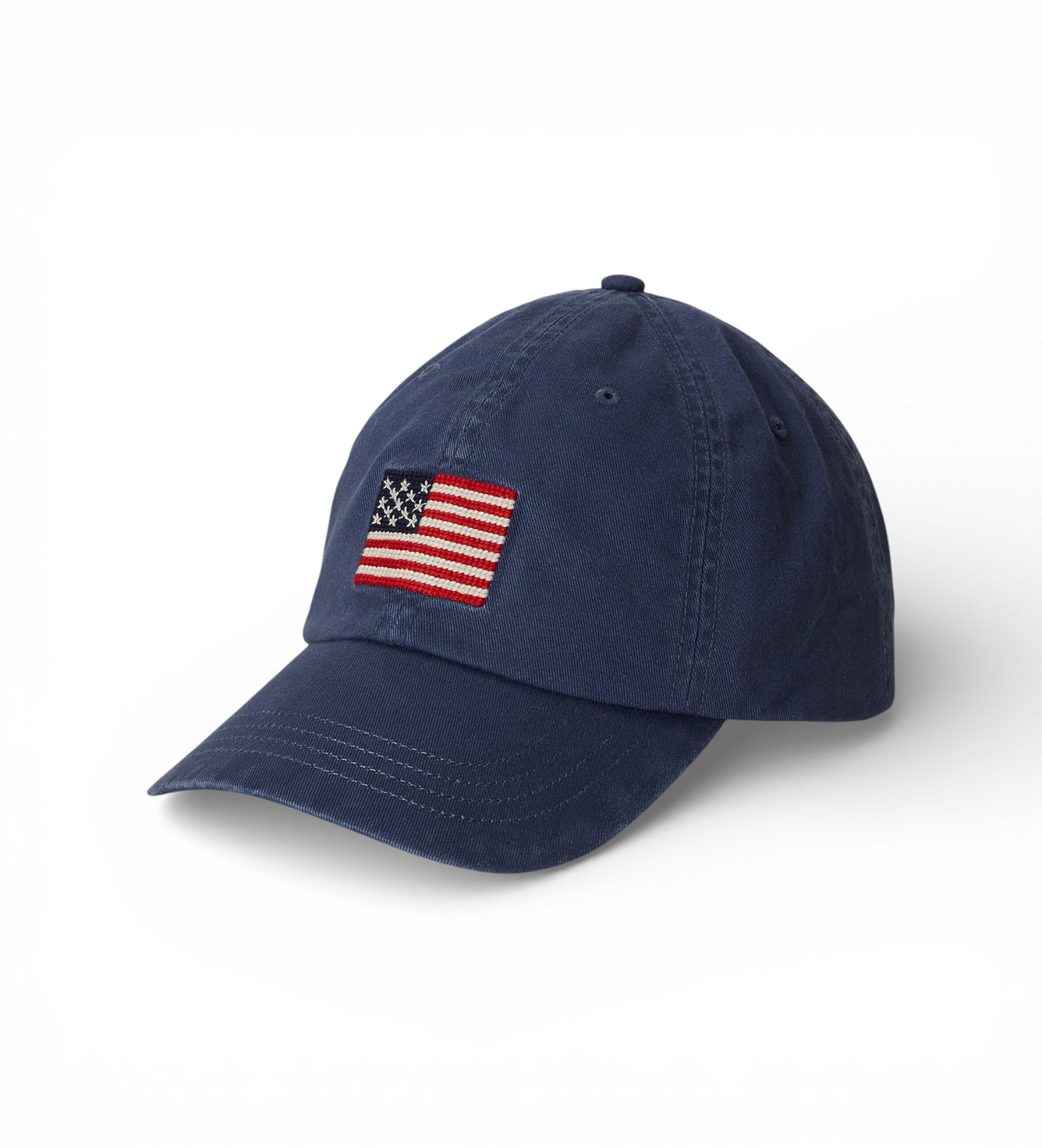 Questo berretto da baseball in twill di cotone presenta una storica bandiera americana ricamata a punto croce sulla parte anteriore ed è ispirato ai cappelli d'archivio di Polo Ralph Lauren.