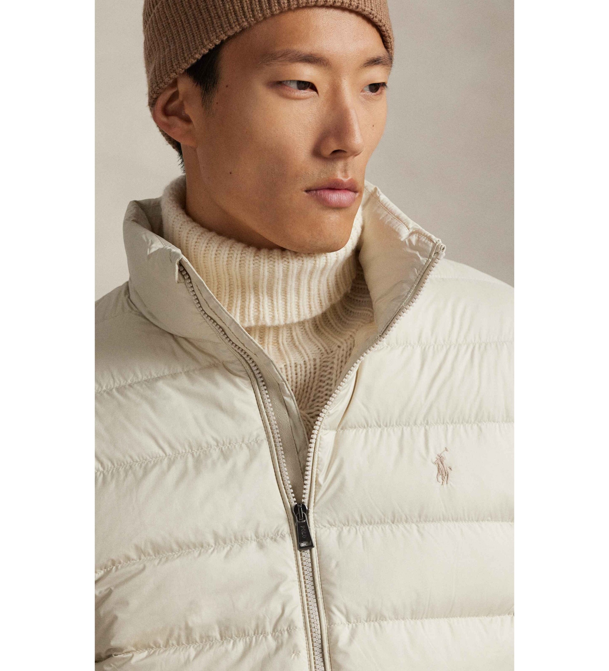 ESTERNO: 100% POLIESTERE (RICICLATO), FODERA: 100% POLIESTERE (RICICLATO), IMBOTTITURA: 75% PIUMINO D'ANATRA, 25% PIUME D'ANATRA