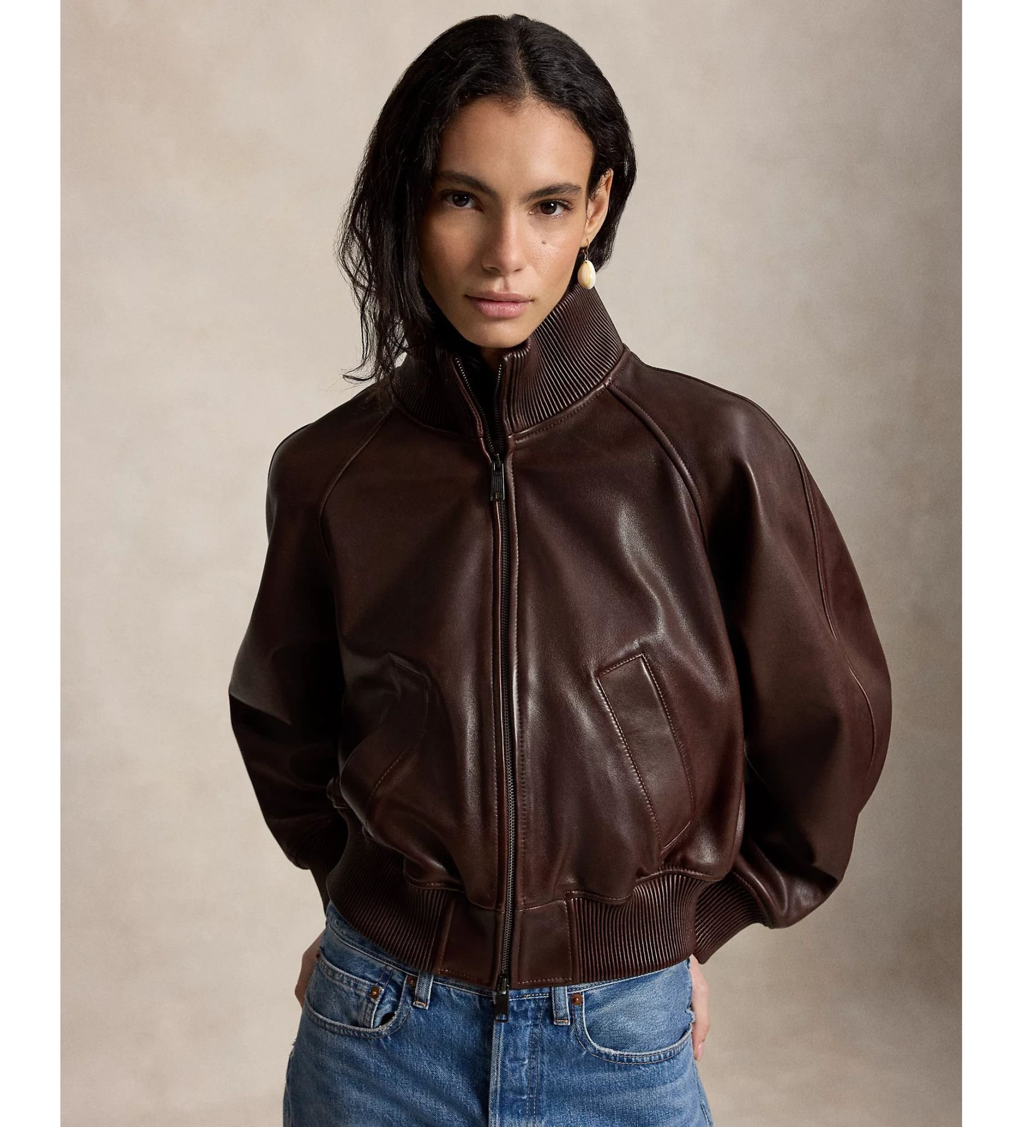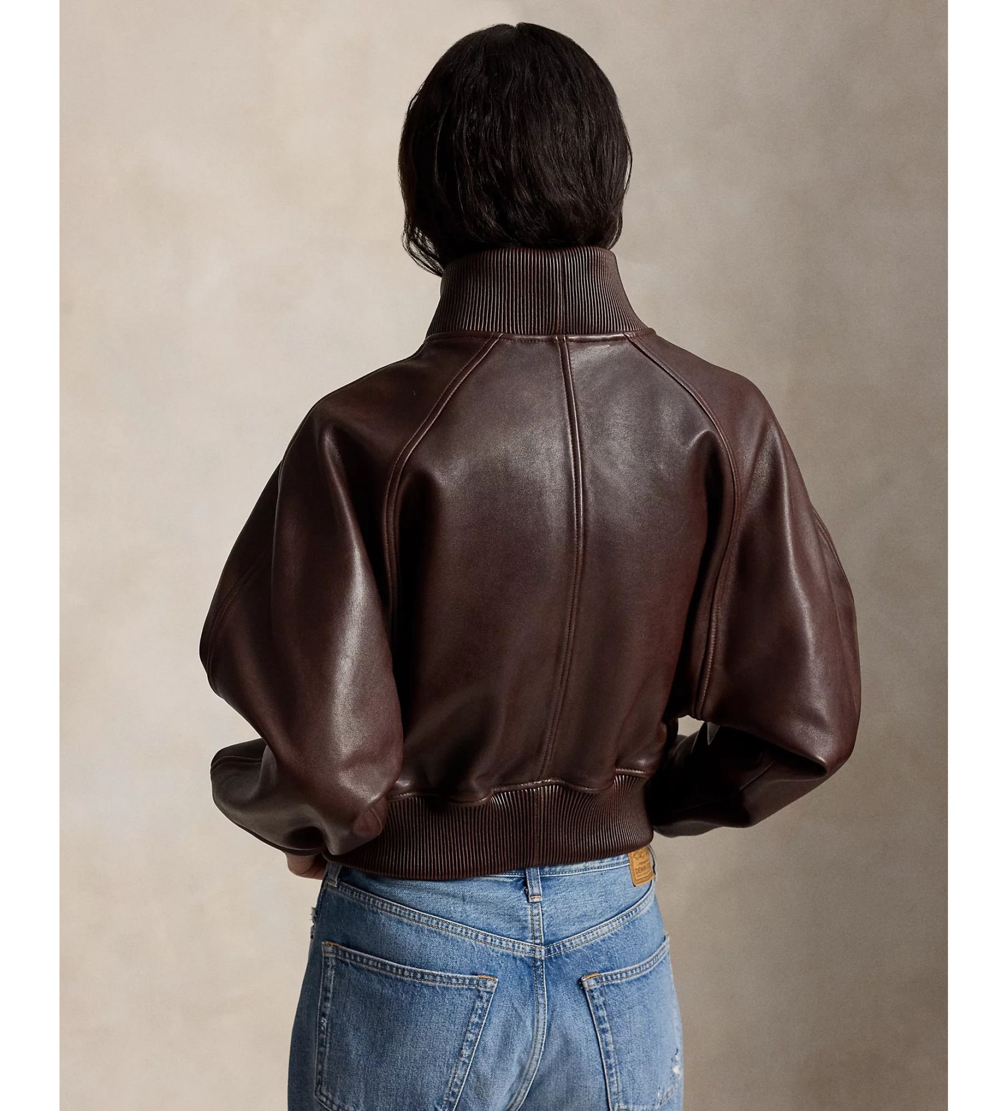 Questa giacca di ispirazione aeronautica, realizzata in morbida pelle pieno fiore e impreziosita da profili in pelle a coste, presenta una vestibilità comoda ed è foderata in morbido twill di cupro. Una cerniera a tutta lunghezza con due cursori sul davanti garantisce versatilità e consente il controllo della temperatura.