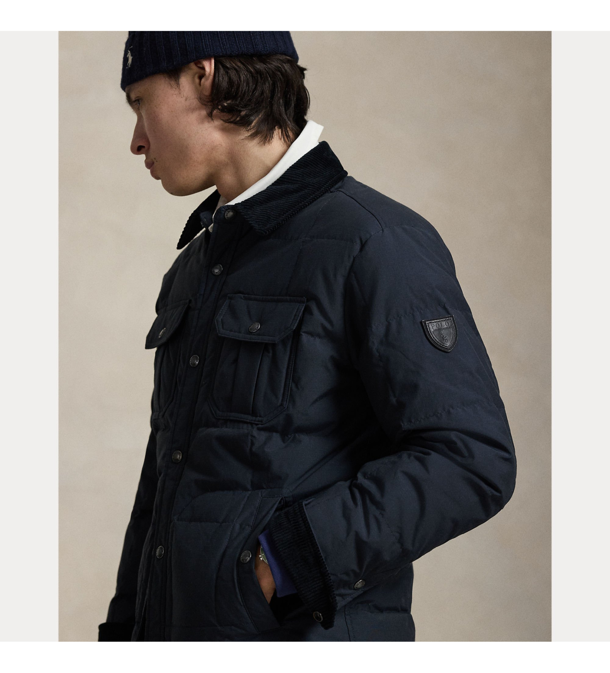 Questo capo unisce la silhouette di una camicia alla protezione di una giacca, grazie al tessuto ripstop idrorepellente, alla fodera in pile a pelo lungo e all'imbottitura in piumino con fill-power 650. Il colletto in velluto a coste, le esclusive chiusure a scatto e la nostra esclusiva patch con stemma, gli conferiscono un look Polo ancora più iconico.