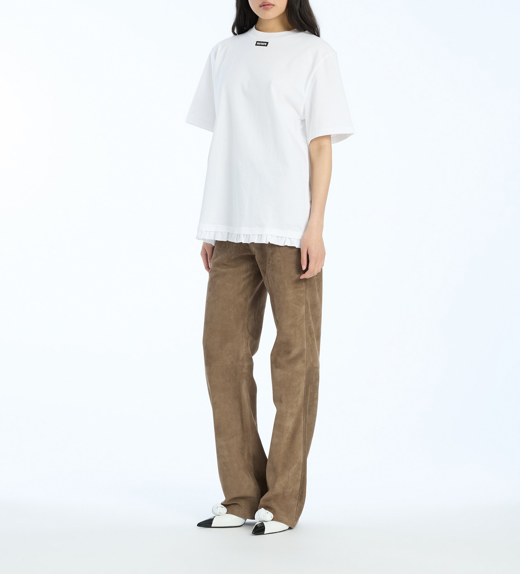Ampia t-shirt con volant di ROTATE in bianco. Un modello dalla vestibilit comoda che unisce la semplicit di una t-shirt basic a un delicato dettaglio con volant sull'orlo, aggiungendo un tocco femminile e moderno.