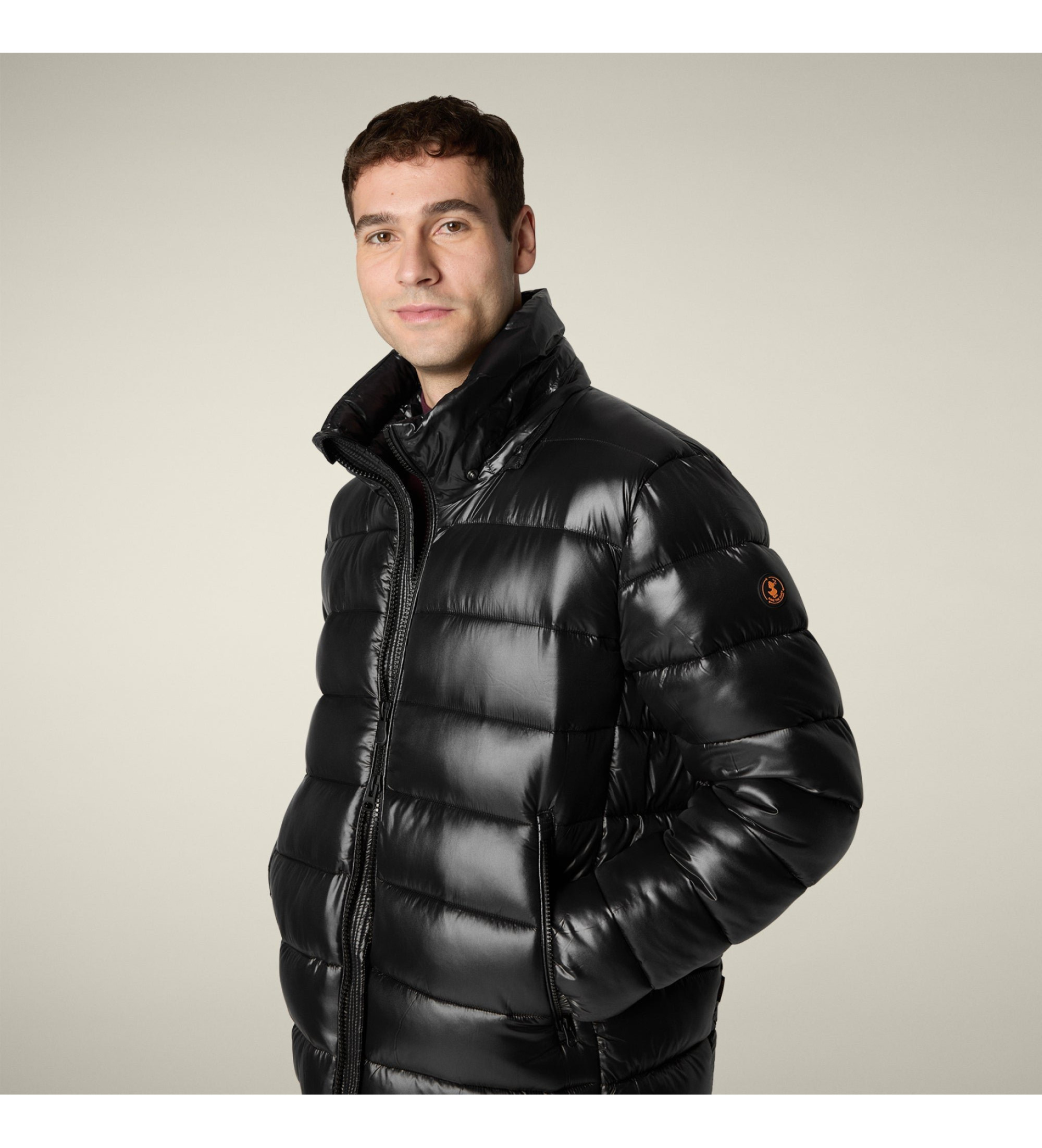 Imbottito e generosamente trapuntato, il piumino da uomo Florian, realizzato senza materiali animali, reinventa lo stile quotidiano con un'audace finitura laccata. Dotato di cappuccio rimovibile e regolabile, si distingue per il tiralampo personalizzato e il logo rotondo sulla manica. L'orlo con coulisse e i polsini elastici con bottoni automatici garantiscono un comfort perfetto, mentre le tasche con cerniera e la tasca interna sul petto offrono ampio spazio per i tuoi oggetti essenziali.