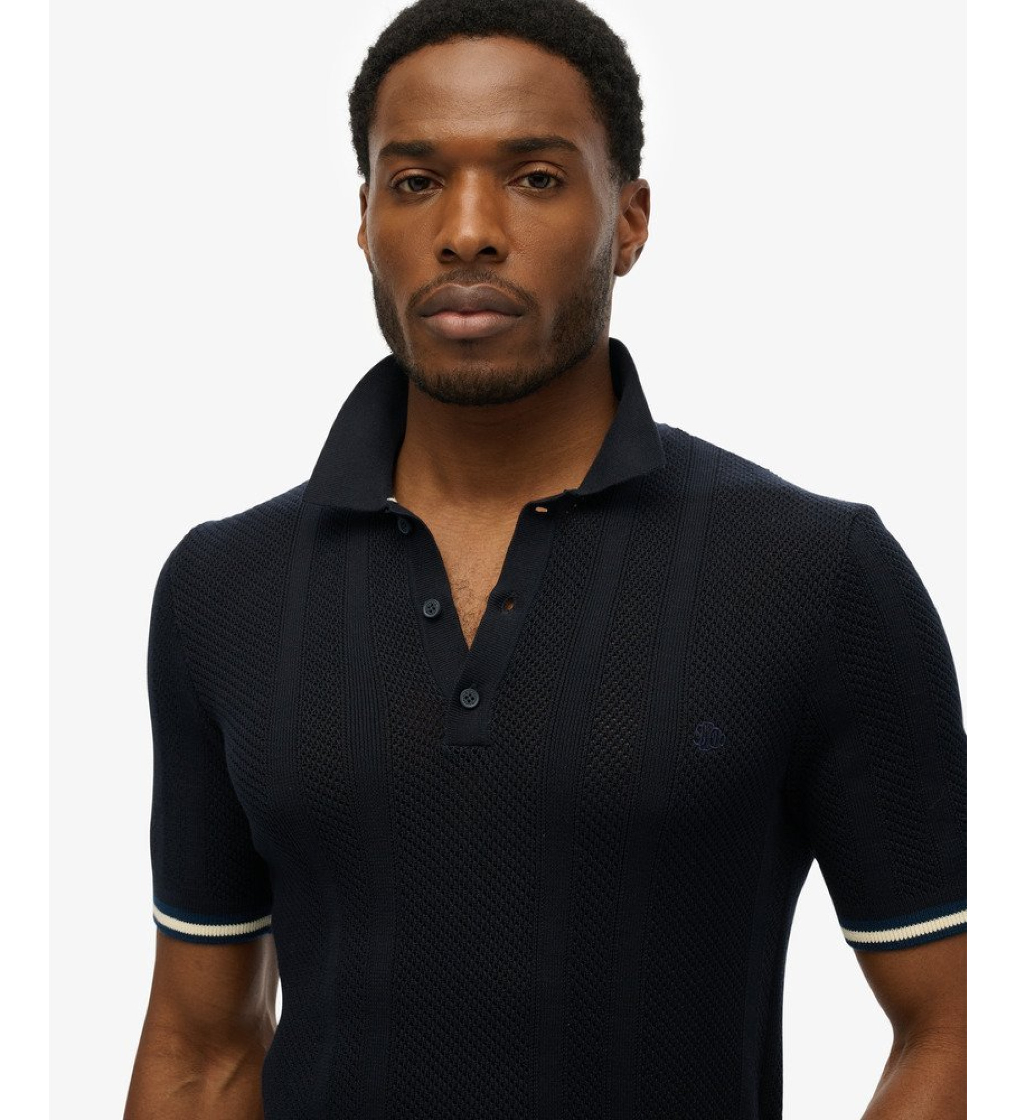 Questa polo in maglia testurizzata è una scelta elegante per gli uomini che cercano un look rilassato ma sofisticato.