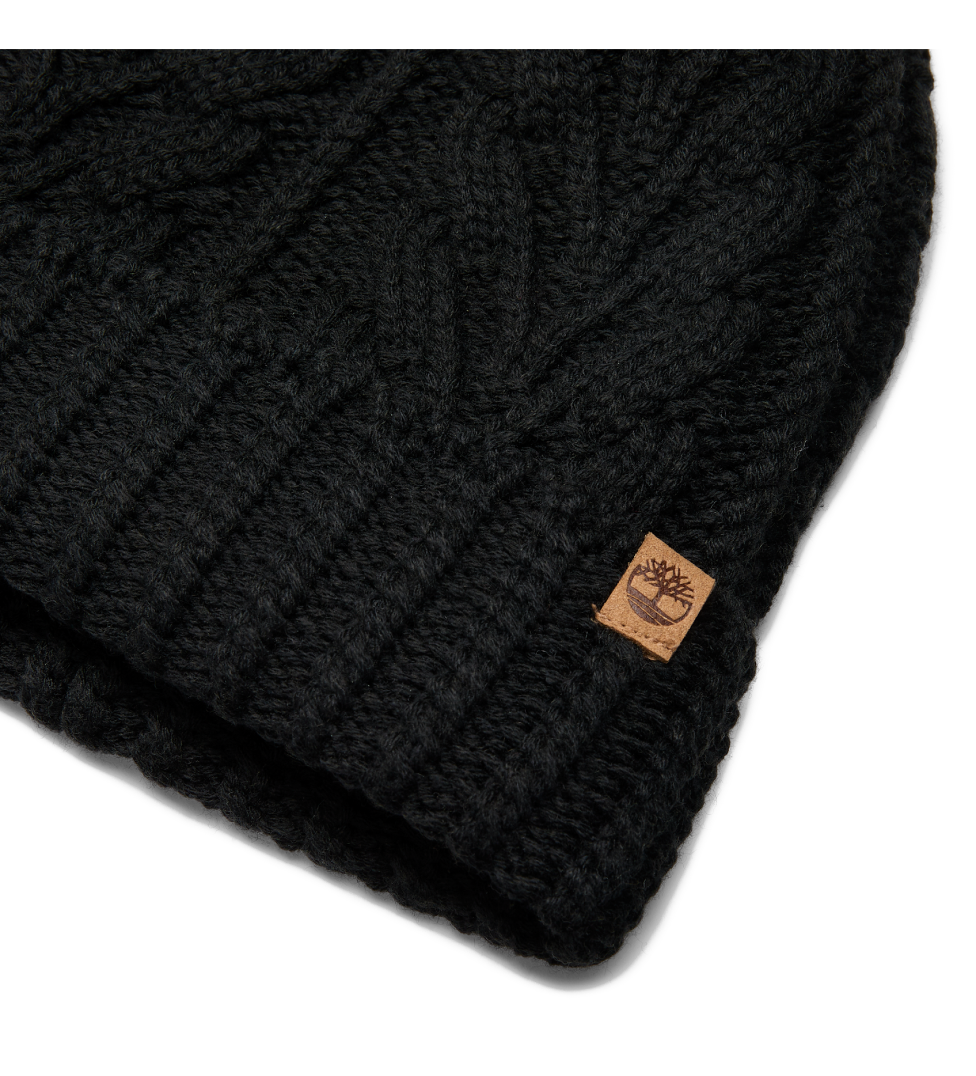 Non vedrai l'ora che arrivi il freddo per indossare questo berretto con pompon in maglia a trecce. Realizzato in un morbido mix di 70% poliestere e 30% acrilico, con tesa arrotolata impreziosita dal logo dell'albero in finta pelle scamosciata, presenta un design versatile che unisce la classica maglia a trecce a uno stile moderno.