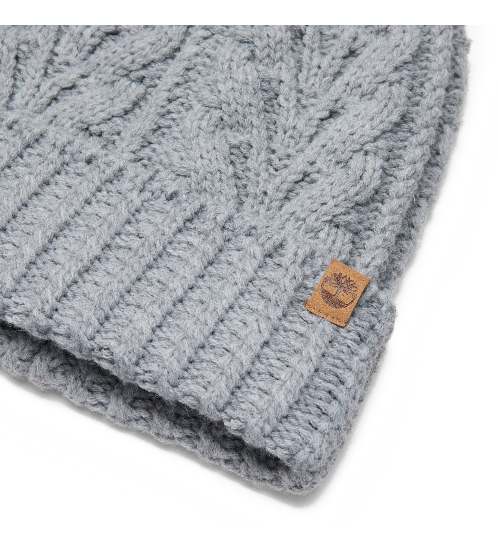 Non vedrai l'ora che arrivi il freddo per indossare questo berretto con pompon in maglia a trecce. Realizzato in un morbido mix di 70% poliestere e 30% acrilico, con tesa arrotolata impreziosita dal logo dell'albero in finta pelle scamosciata, presenta un design versatile che unisce la classica maglia a trecce a uno stile moderno.