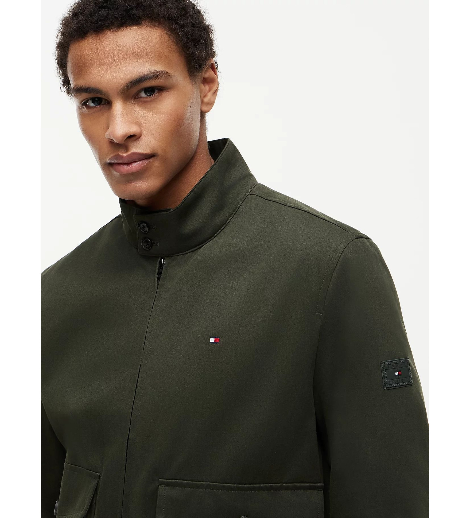 Questa giacca Harrington, realizzata in misto cotone, presenta una finitura contemporanea e una fodera a contrasto.