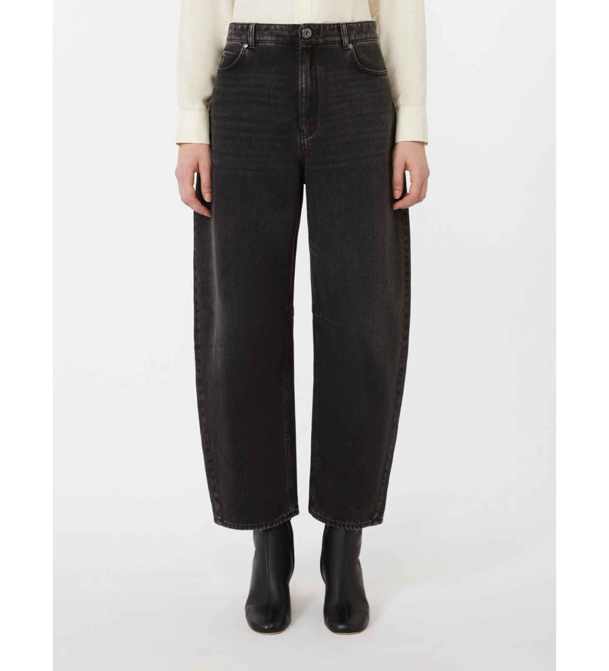Jeans in puro cotone con cinque tasche. Le pieghe sulle ginocchia e sugli orli creano un taglio leggermente sagomato che esalta ulteriormente la vestibilità rilassata e confortevole del capo. Chiusura frontale.