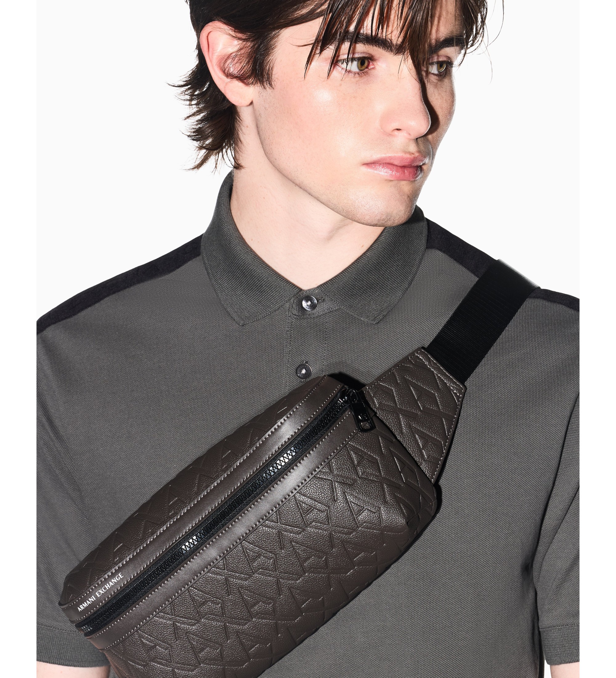 Heren heuptasje in bruin met herhaald logo in relif. Gemaakt van 100% polyester en afgewerkt met kunstlederen details op de verstevigde delen en een contrasterend kader rond het logo voor een opvallend, ingetogen detail. Een eigentijds en praktisch accessoire, ontworpen om de belangrijkste spullen in stijl mee te nemen.