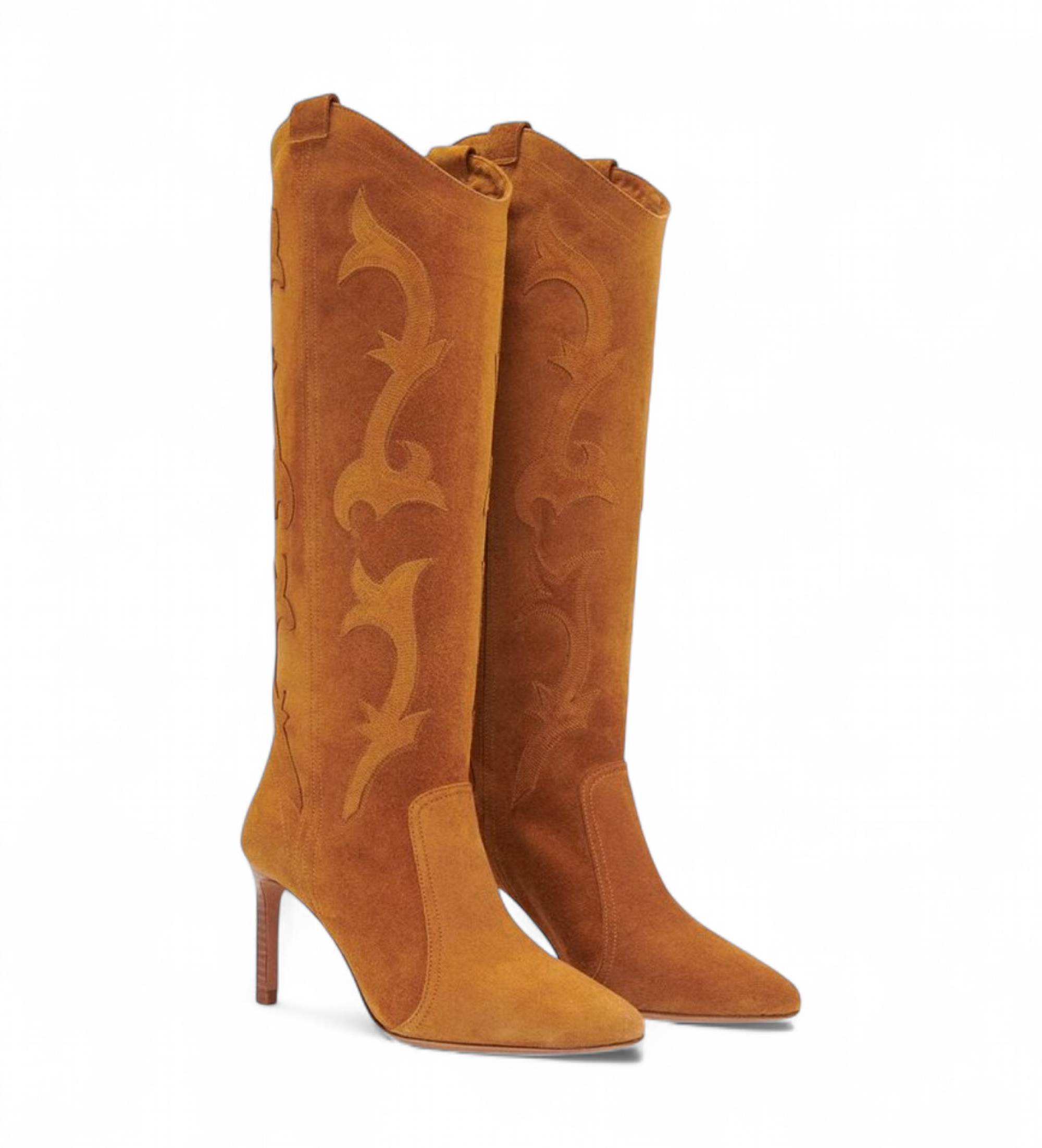 De Caitlin laarzen zijn hoog met een slanke hak die de benen verlengt. Ze zijn gemaakt van 100% rundssplitleder en hebben een prachtige zwarte kleur met arabesk stiksel. Het bovenwerk van de laars neemt zijn cowboy-inspiratie volledig over, in een vrouwelijke en glamoureuze versie. Gemakkelijk aan te trekken, zonder ritsen of riempjes. Draag hem zonder beperkingen met een midi- of kort jurkje, of zelfs met een skinny jeans voor een onweerstaanbare look.