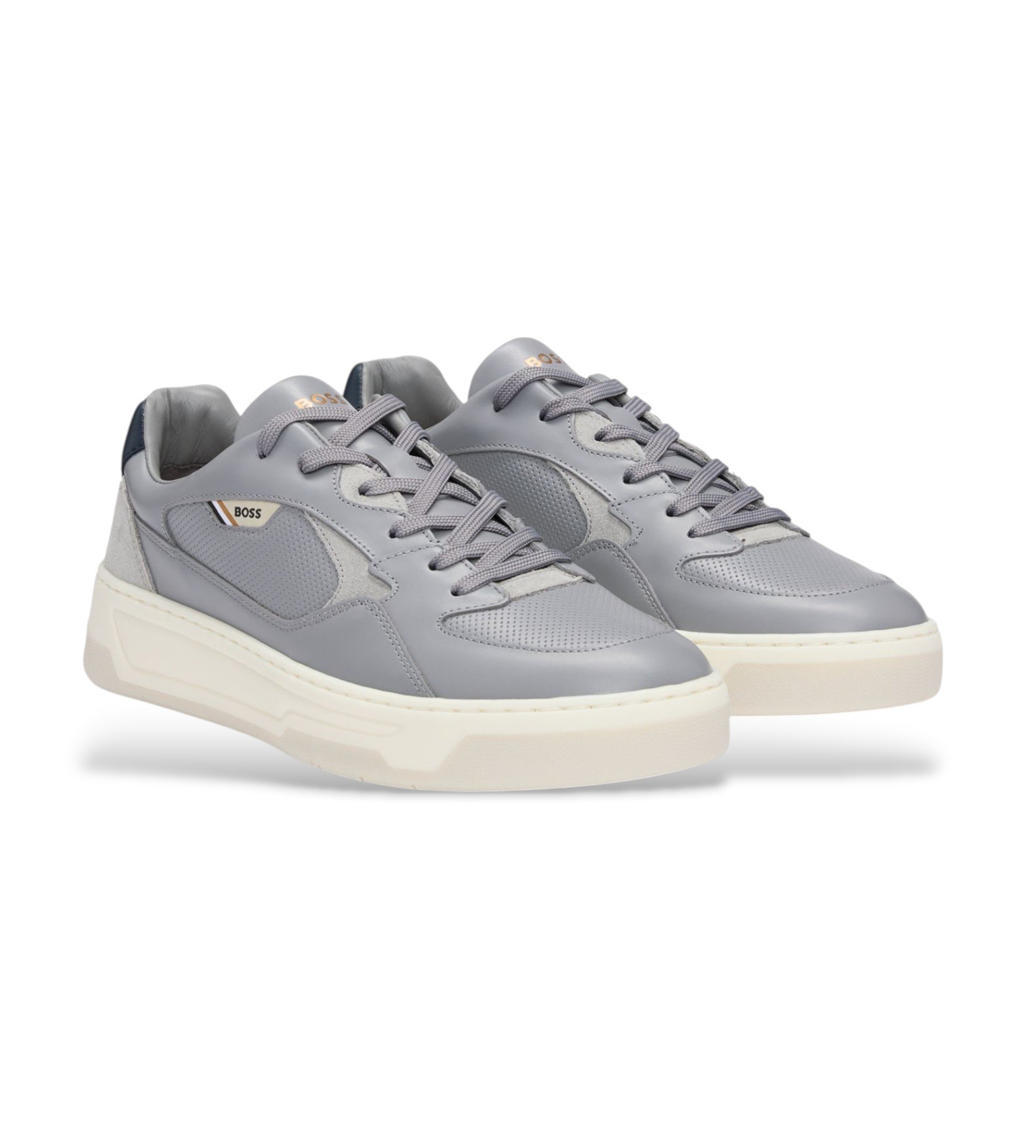 Elegante BOSS-trainers, versierd met een iconisch logo. Deze veterschoenen van gemengd leer hebben een gelaagd bovenwerk en een gewatteerde kraag.