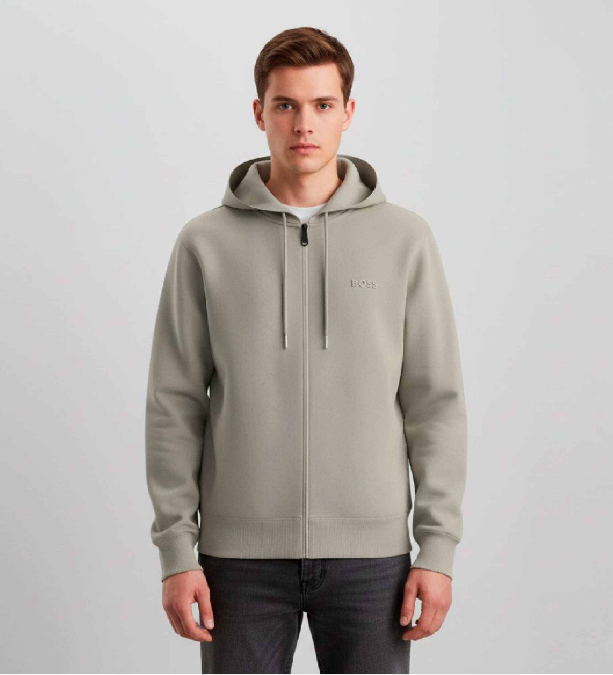 Dit BOSS Menswear sweatshirt met capuchon en subtiel logo op de borst is perfect voor je vrije tijd. Rechte pasvorm. Zacht stretch katoen. Ritssluiting.