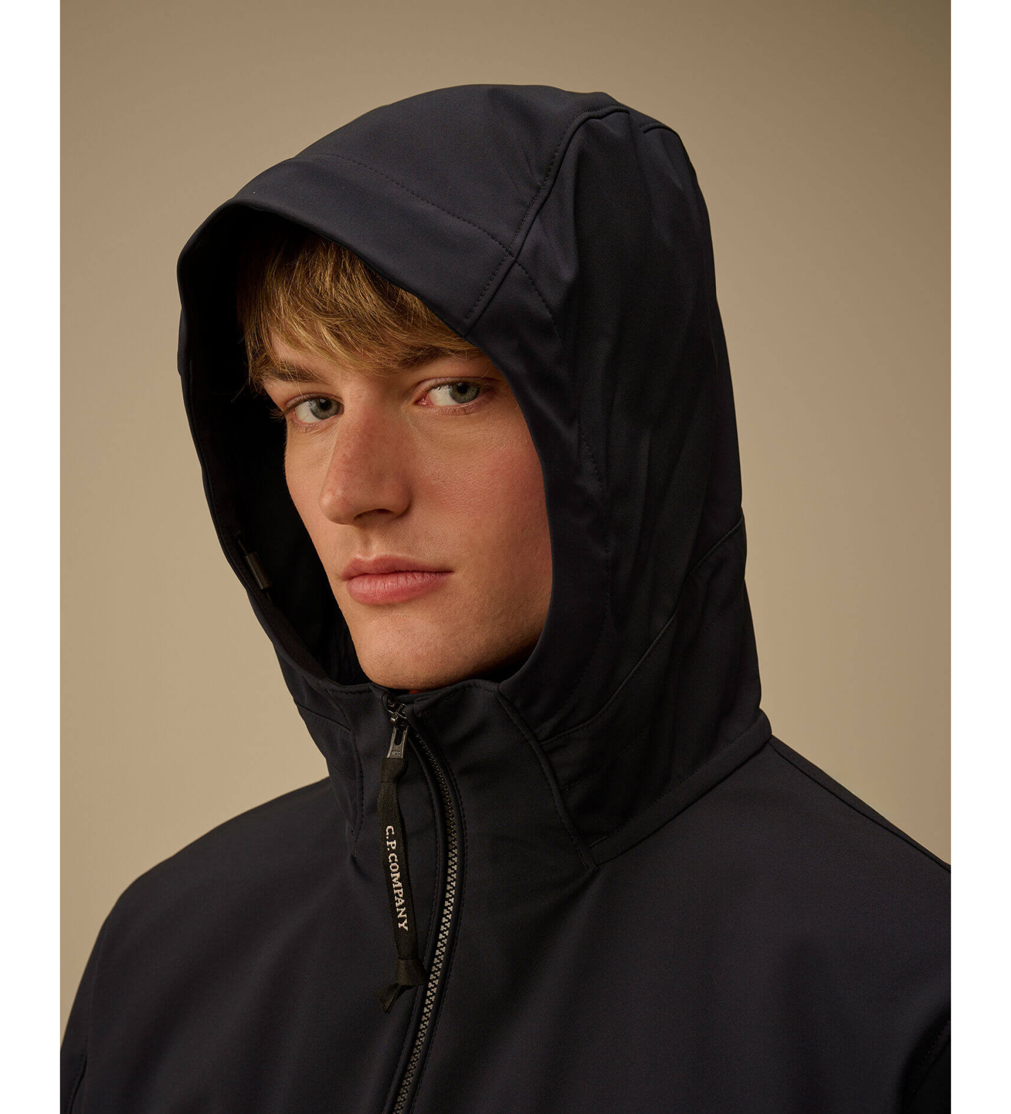 Jack met capuchon gemaakt van CP Shell-R, een drielaagse gerecyclede polyester softshell met mechanische stretch, gecertificeerd door de Global Recycling Standard (GRS). Deze multifilament stof combineert comfort en bescherming en biedt waterbestendigheid tot 5000 mm en winddichtheid. Het model heeft een verstelbare capuchon, tweeweg ritssluiting en zijzakken met rits. Het ontwerp wordt afgemaakt met de iconische CP Company lens op de mouwzak, plus elastische manchetten en zoom. Anti-val behandeling. Normale pasvorm.