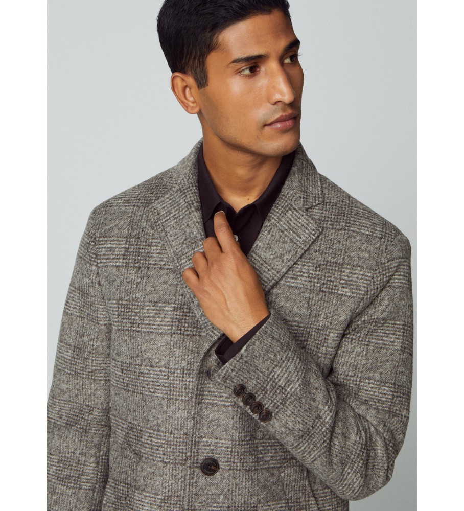 Mooie ongevoerde gebreide jas in Itali met geborstelde ruiten in een geraffineerd kleurenpalet, klassieke revers en paspelzakken.