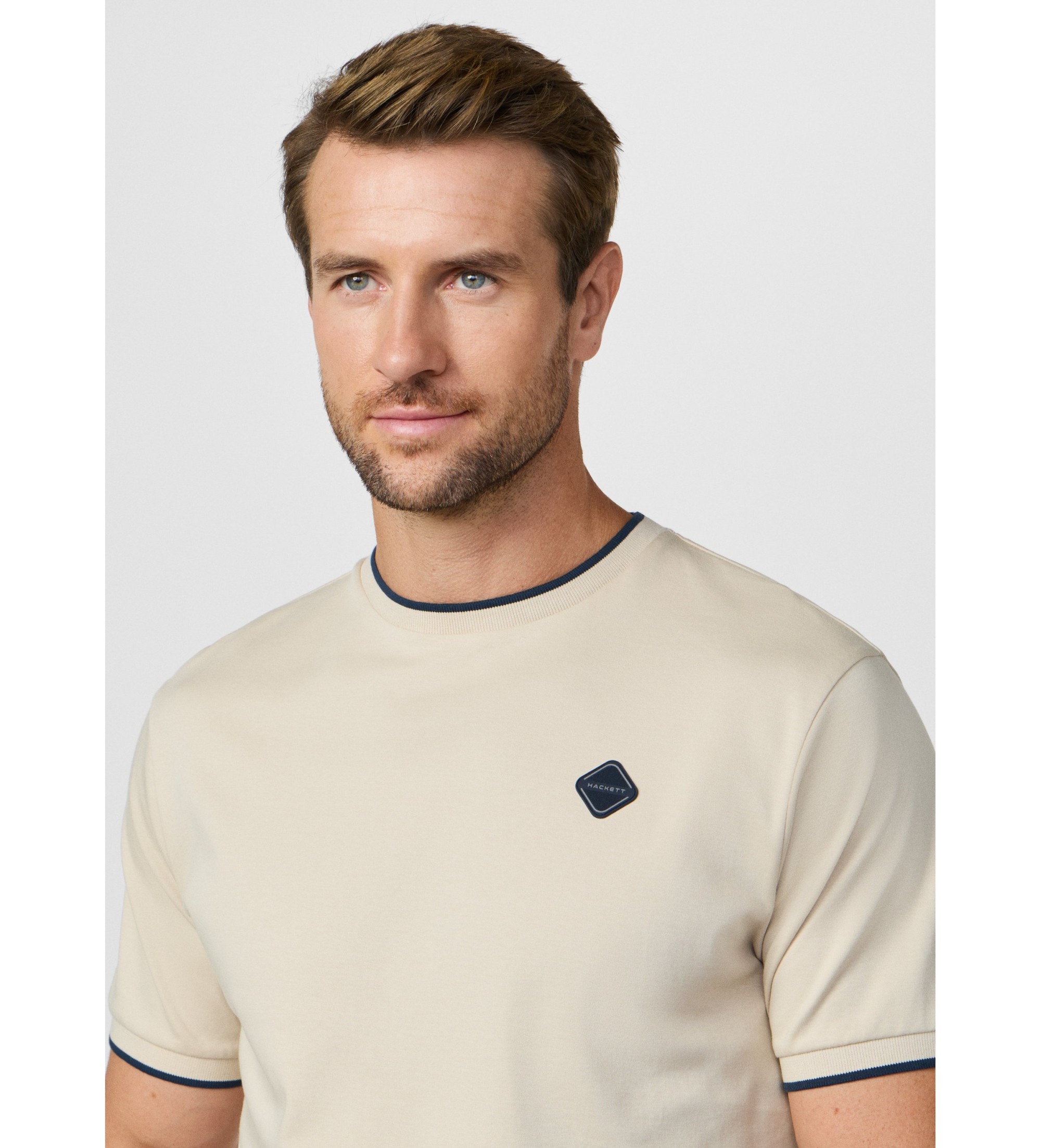 Een klassiek Hackett Sport T-shirt met korte mouwen van hoogwaardig stretch katoen interlock met een zachte, vloeiende afwerking. Een comfortabel, modern ontwerp met opvallende details voor een sportieve stijl.