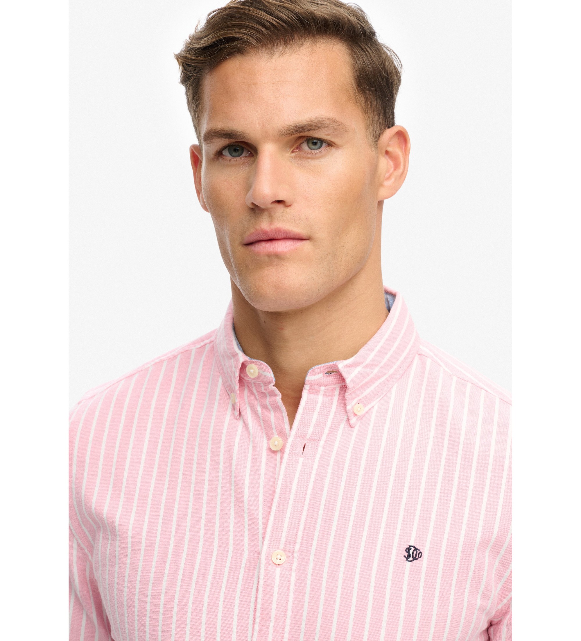 Een relaxed fit herenoverhemd van Oxford stof voor structuur en comfort. Het heeft minimalistische lijnen, een klassieke button-down kraag, lange mouwen en een discreet geborduurd logo op de borst dat de afwerking benadrukt. De combinatie van koraalkleurige strepen op een lichte basis geeft het een eigentijdse en heldere uitstraling, perfect om alledaagse looks af te maken met een verfijnd gebaar. Overheersende kleur: koraal. Hoofdmateriaal: 100% katoen.