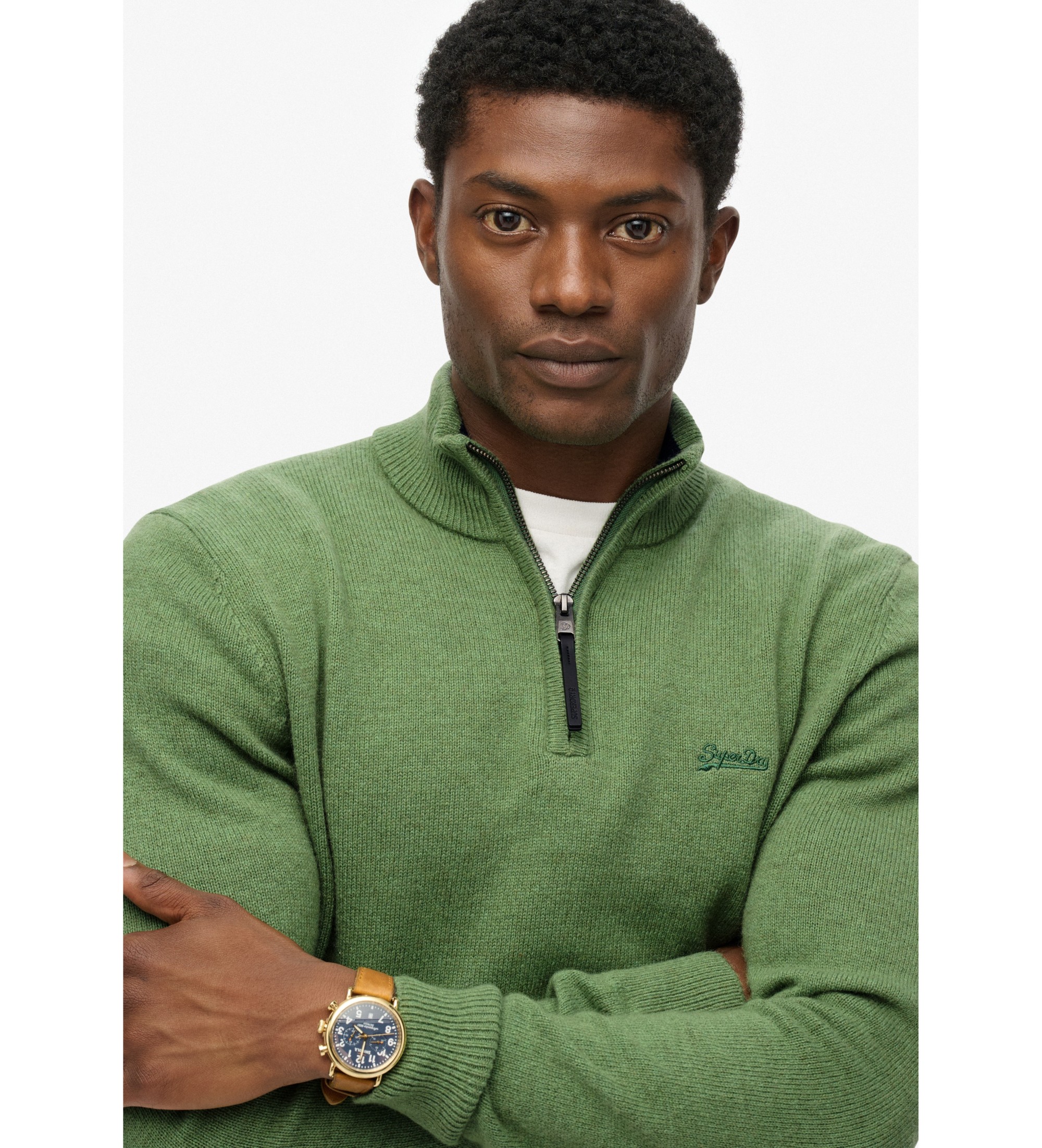 De slim-fit herentrui combineert elegantie en comfort in zijn ontwerp. Hij heeft een halve ritssluiting voor een moderne touch, geribde boorden die de verfijnde stijl accentueren en een geborduurde tekst op de borst. Het is gemaakt van een weelderige wolmix, wat zorgt voor uitzonderlijk comfort gedurende de hele dag. Ideaal voor mensen die hun alledaagse ensembles willen verfraaien met eenvoud en distinctie.