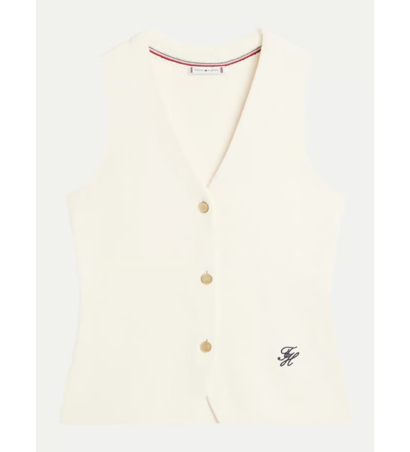 Dit slim-fit gebreide vest van puur gekamd katoen heeft verfijnde gouden knopen en een all-over gebreide textuur.