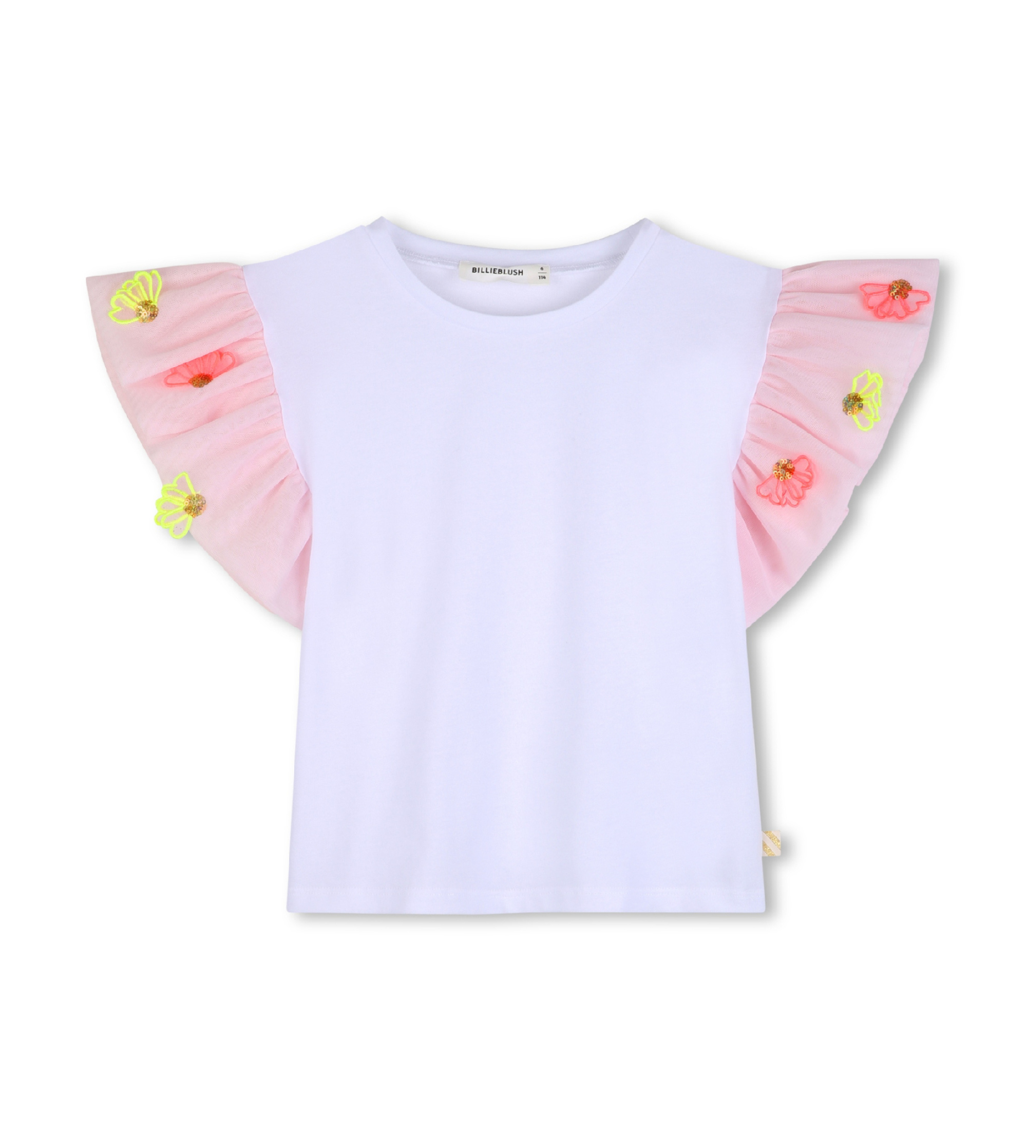 Uroczysta koszulka z dzianiny z krótkimi rękawami z haftowanej siateczki. Elegancki i wyrafinowany model, który łączy wygodę luźnego kroju z dopracowanymi detalami na specjalne okazje.