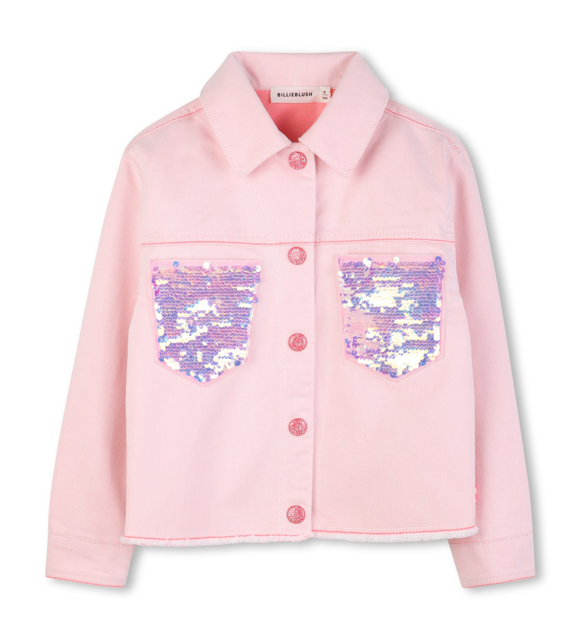 Dwukolorowa kurtka z cekinowymi kieszeniami i zapięciem na zatrzaski. Kurtka z charakterem i blaskiem, która łączy dwukolorowy kontrast twillu ze świątecznymi, przyciągającymi wzrok detalami, zapewniając wygląd z dużą dozą osobowości.
