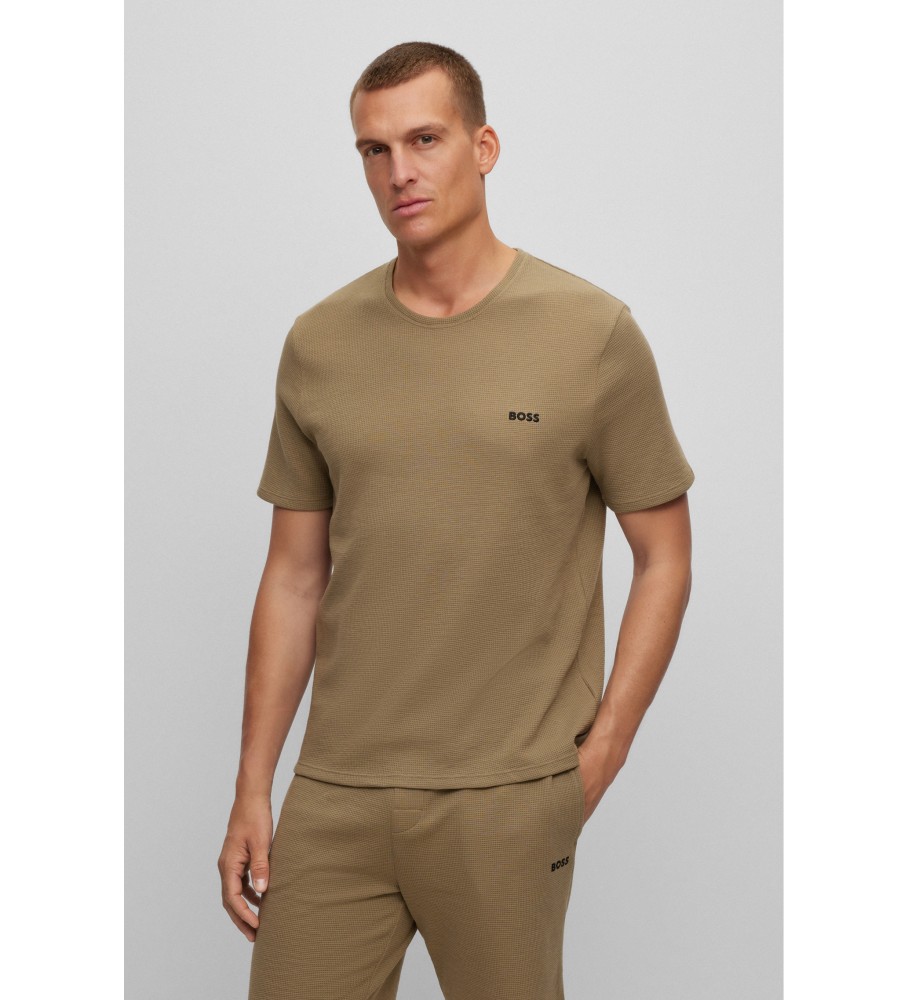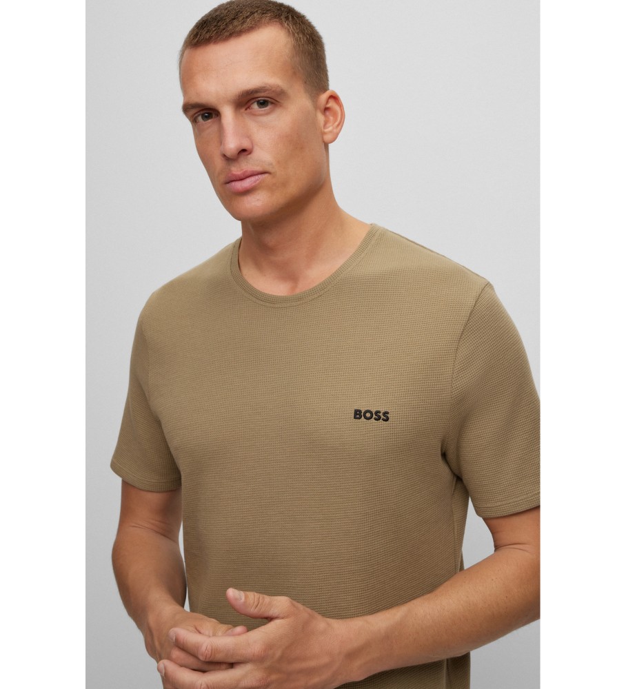 Wygodny top od piżamy marki BOSS o regularnym kroju, wykonany z mieszanki bawełny z siateczkową strukturą i wyszywanym logo na piersi.