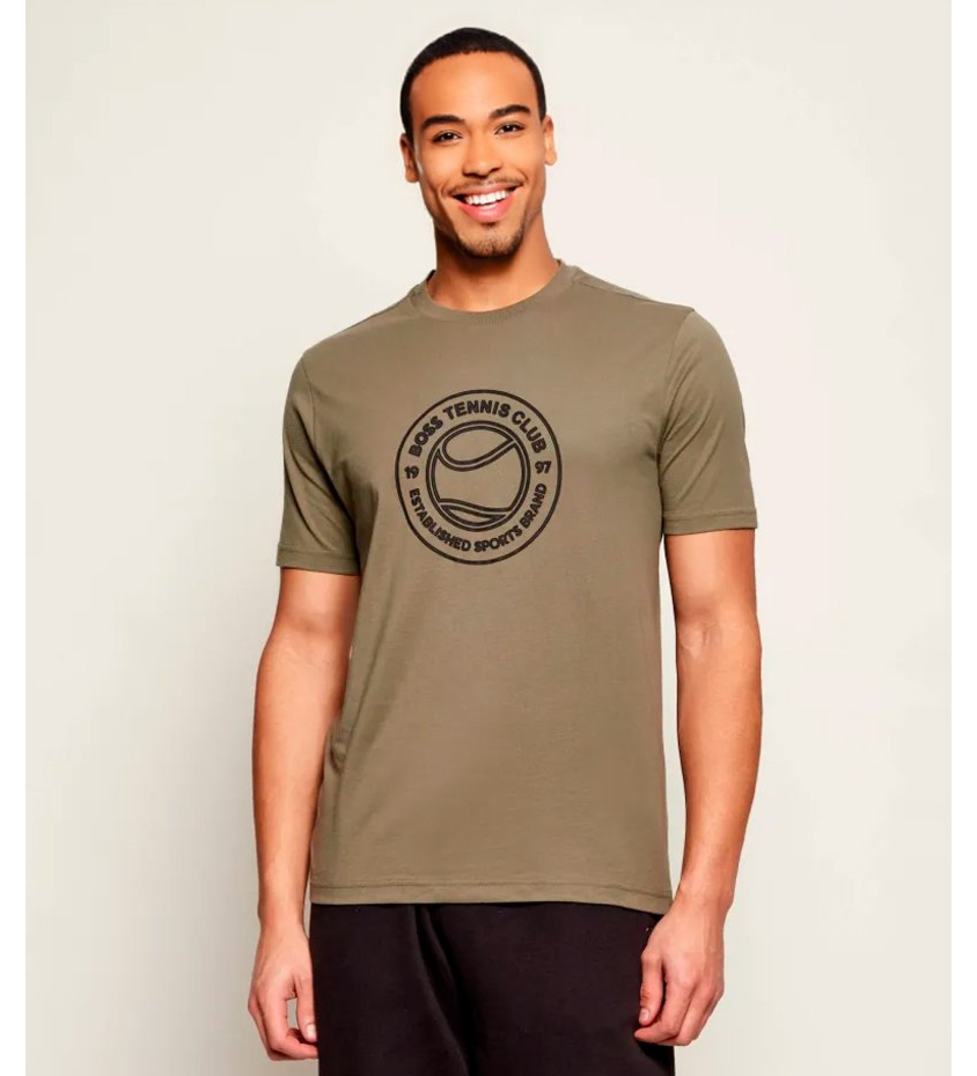 Ten T-shirt BOSS Menswear z oddychającej bawełny ze sportową ilustracją inspirowaną tenisem to prosty, swobodny element. Prosty krój.