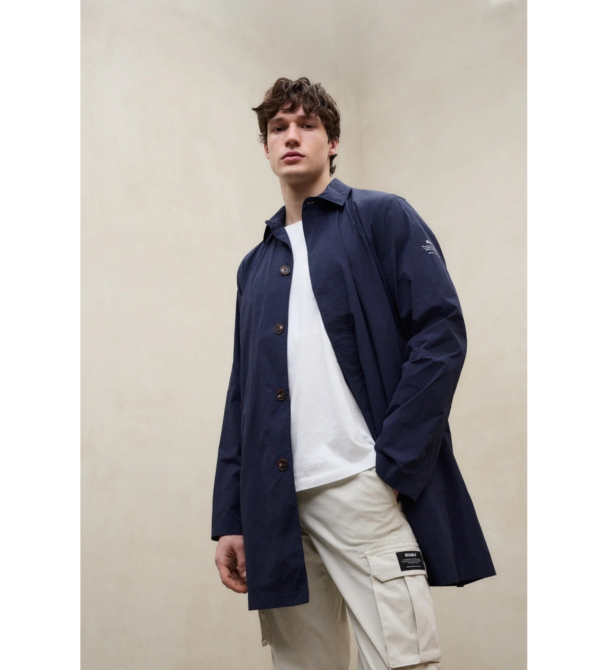 Ponadczasowy płaszcz, który odzwierciedla zaangażowanie Ecoalf w zrównoważony rozwój, łącząc odpowiedzialny design, funkcjonalność i staranną estetykę w każdym szczególe.