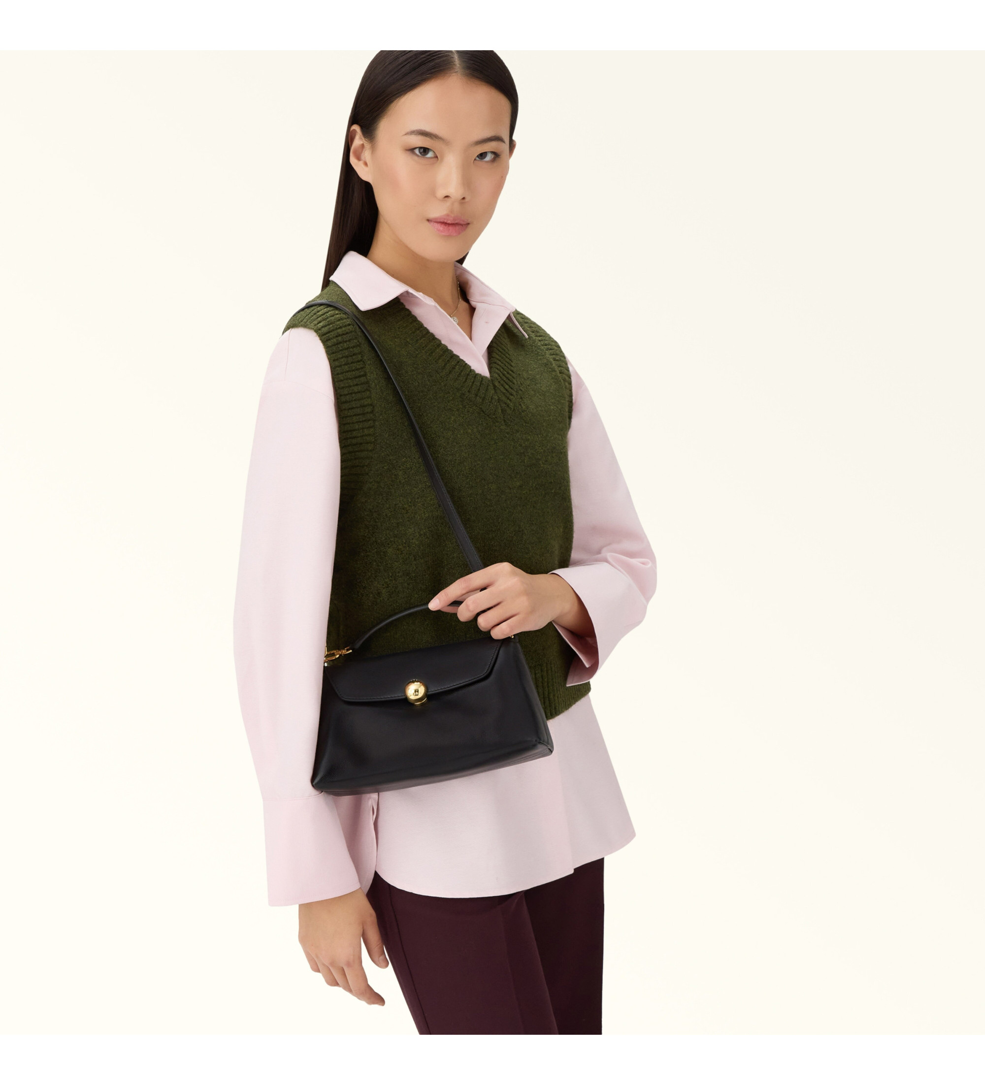 Trapezowa mini torebka na ramię Furla Sfera Soft jest idealna do noszenia na ramieniu lub jako torebka dzięki cienkiemu paskowi z bocznym karabińczykiem. Miękka skóra nappa o lekko ziarnistej fakturze nadaje temu akcesorium naturalny, luksusowy charakter. Magnetyczne zapięcie na guzik ozdobione okuciami Sfera dodaje wyjątkowej oryginalności.