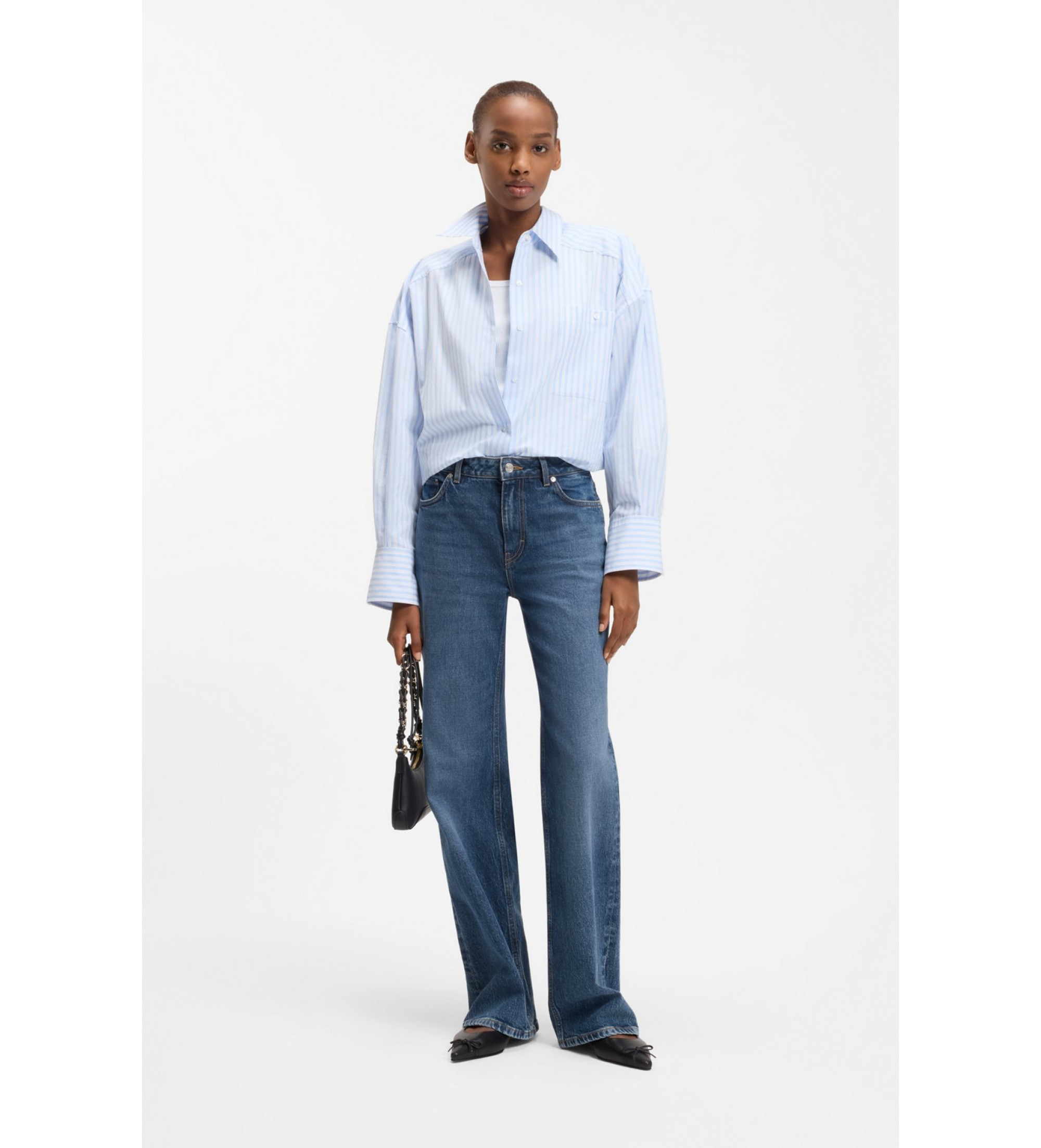 Te rozkloszowane jeansy HUGO z wysokim stanem są wykonane z elastycznego denimu, który zachowuje swój kształt i zapewnia optymalny komfort. Autentyczny niebieski odcień.