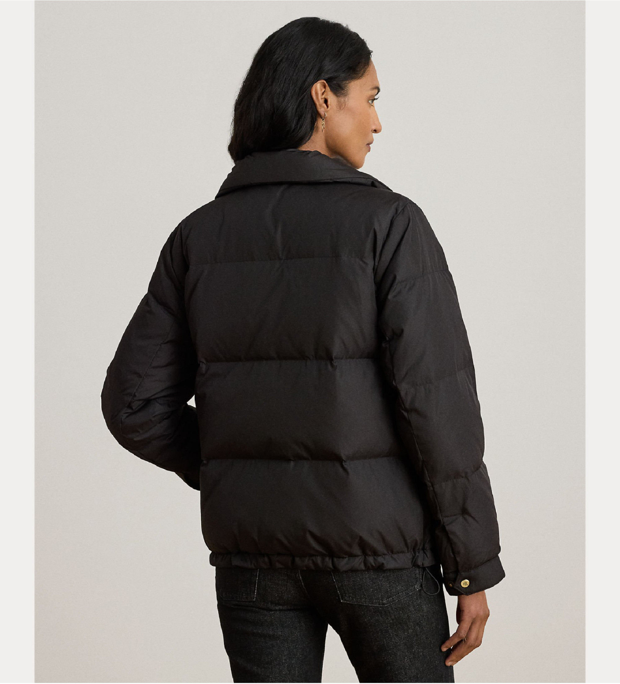 Ten pikowany płaszcz z lejkowatym dekoltem nabiera wyrafinowanego wyglądu dzięki charakterystycznej naszywce z tarczą Lauren i ma prążkowane pikowanie z wypełnieniem puchowym 450 cuin Fill Power, aby utrzymać ciepło ciała.